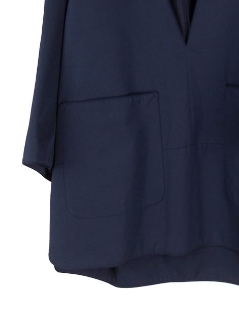 Drawer ドゥロワー 22SS コットンギャバジンVネックブラウス NAVY 36 BLAMINK プルオーバー オーバーサイズ フレアスリーブ