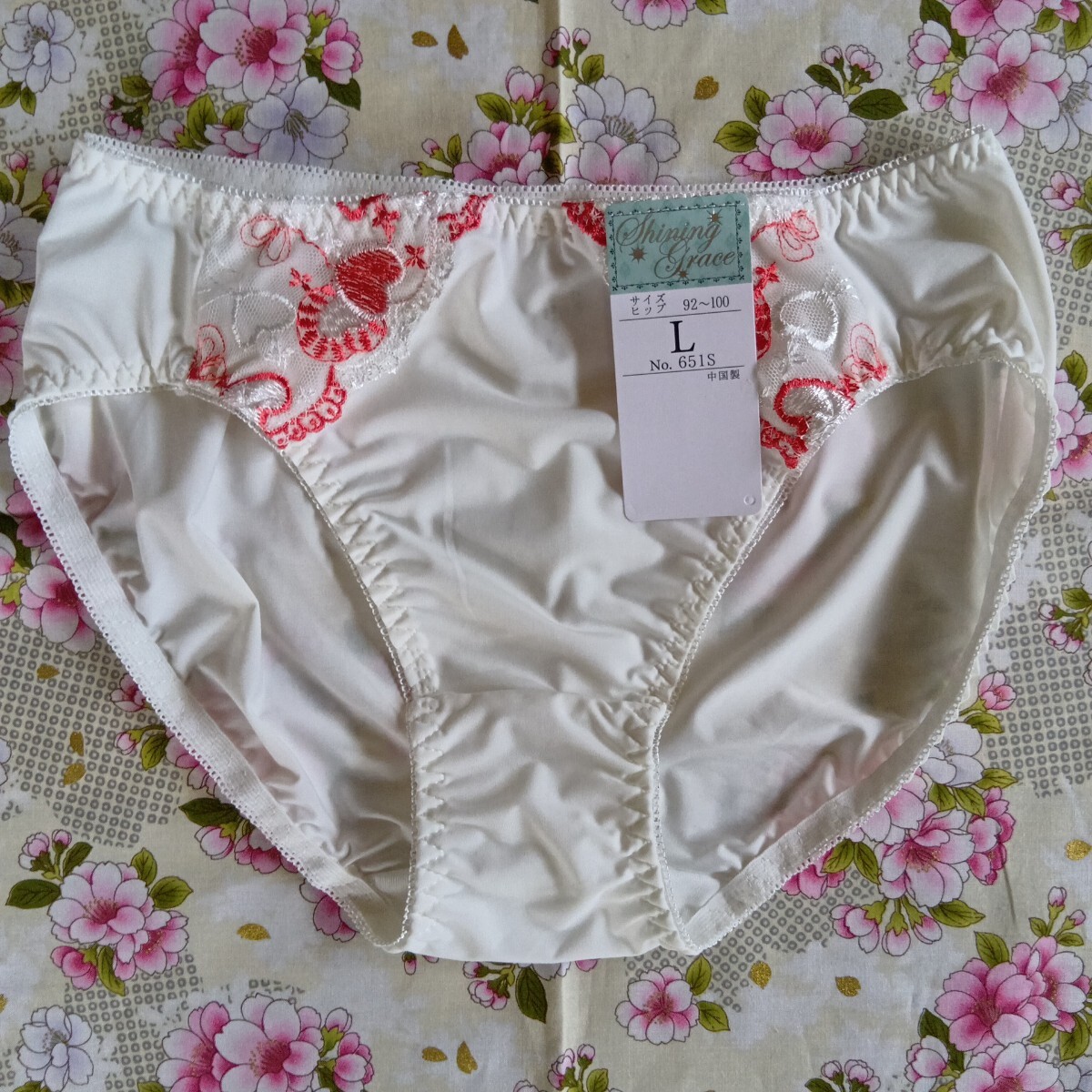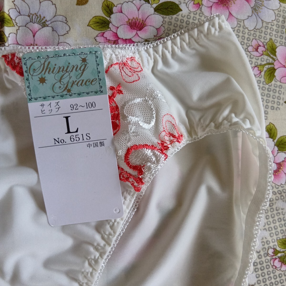 Product name: 白地にサイド赤ハート模様のショーツ L