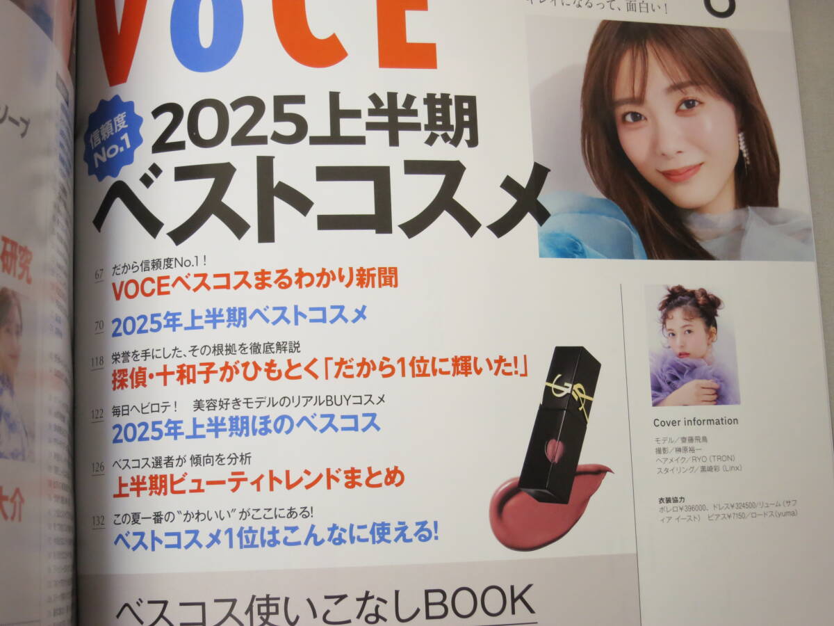 VOCE  ヴォーチェ 2025年8月号 付録なし 齋藤飛鳥 VOCEベストコスメ 受賞アイシャドウ&リップ塗り比べ 受賞スキンケア3週間実力試し