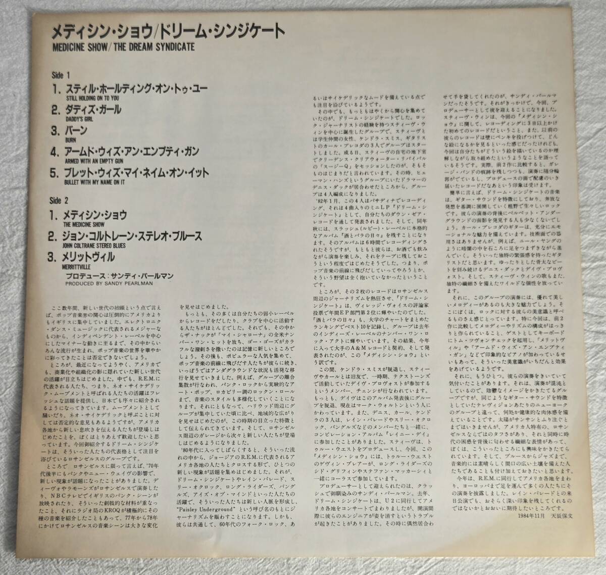 The Dream Syndicate(ドリーム・シンジケート)の名盤「Medicine Show」、1984年発表の国内盤LPレコードです。