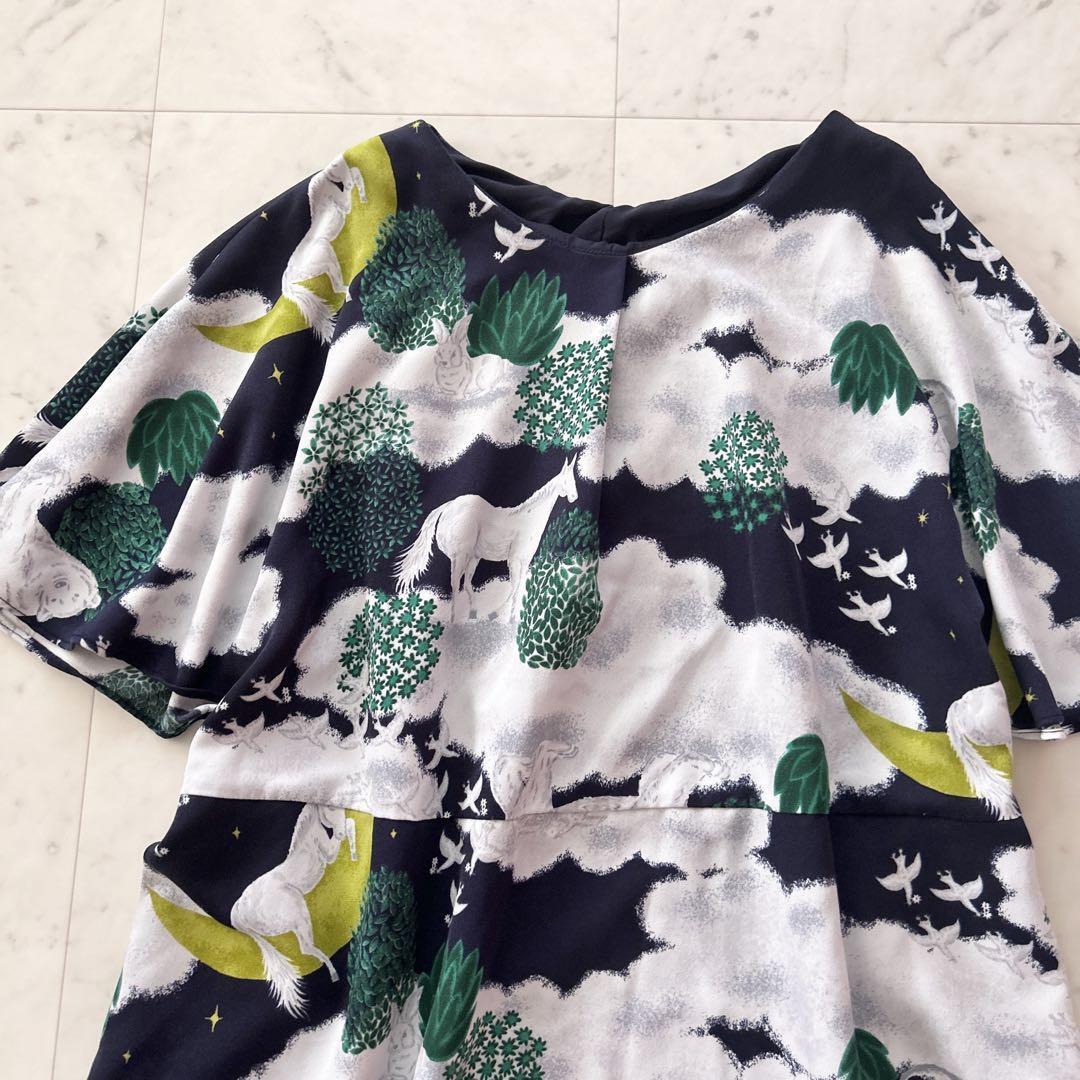 Product name: ふりふ 動物柄 ワンピース ゆったり 馬 猫 鳥 うさぎ ネイビー フリーサイズ