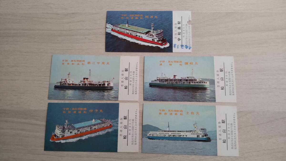 国鉄 宇高連絡船 入場券5種類セット★讃岐丸/伊予丸/阿波丸/土佐丸/第三宇高丸★新鋭連絡船★貨車航走船★松山駅・宇和島駅発行★昭和44年