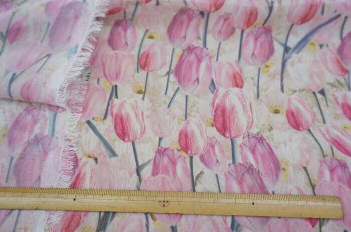 ポ 長5m W巾 チューリップ花柄 Lightピンク系 シフォン ジョーゼット E100 やや薄soft強透過 シャツ ワンピース チユニック シースルー