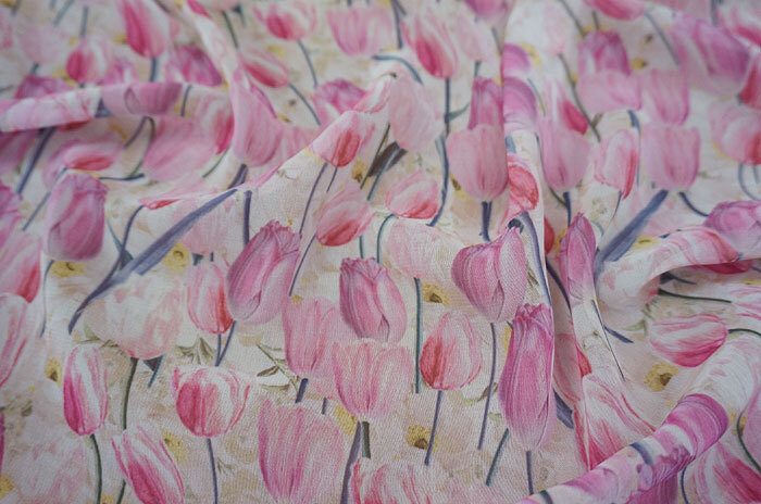 E100・シフォン・ジョーゼット・チューリップ・花柄・Lightピンク系