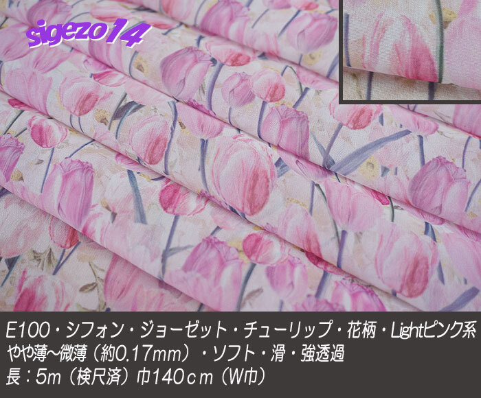 Product name: ポ 長5m W巾 チューリップ花柄 Lightピンク系 シフォン ジョーゼット E100 やや薄soft強透過 シャツ ワンピース チユニック シースルー