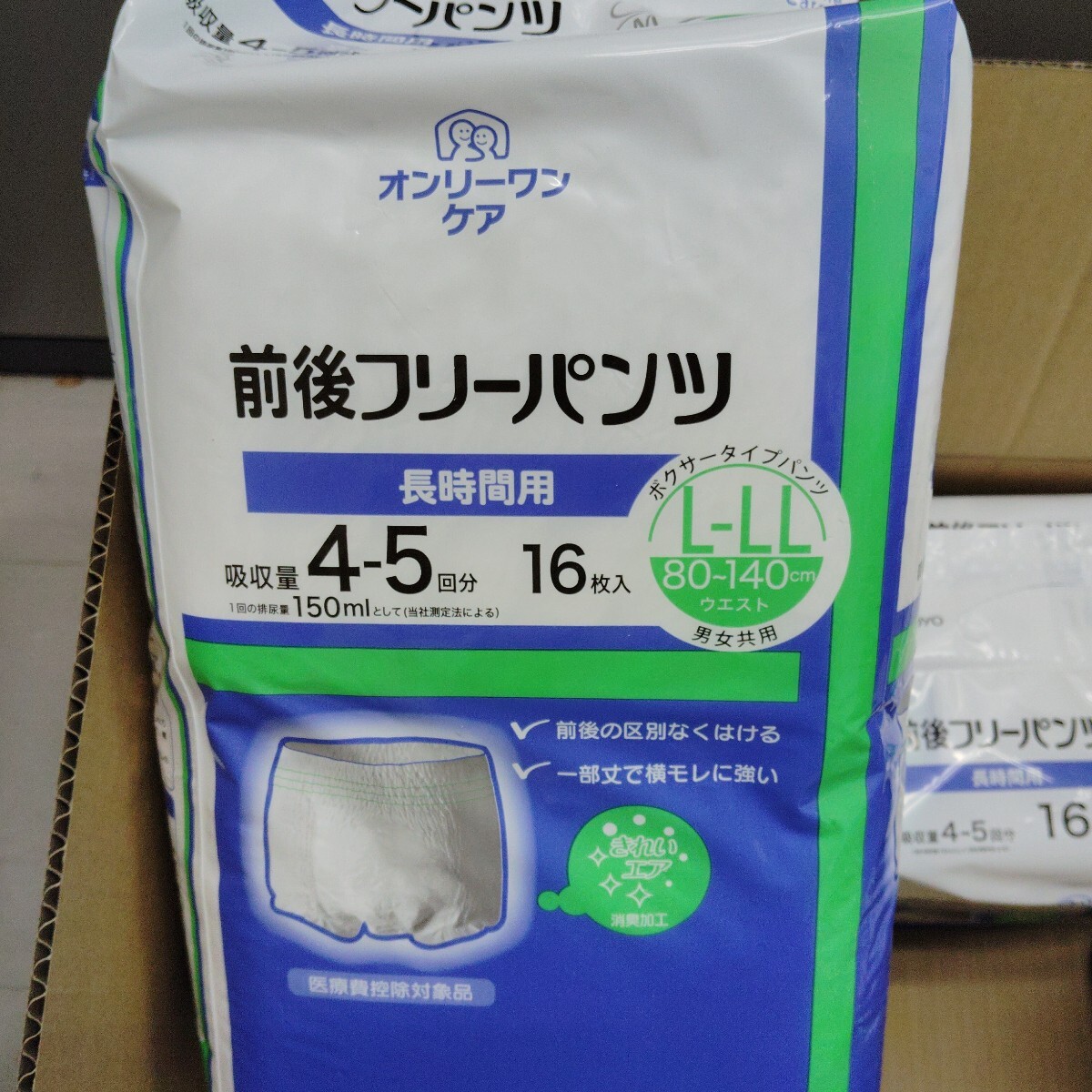 Product name: 男女兼用 介護用品 おむつ オムツ オンリーワンケア 前後フリーパンツ 長時間用 L-LL 16枚×6袋 ボクサータイプパンツ 新品