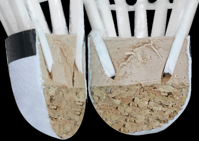 【天然コルクと合成コルクの二層構造】天然コルクと合成コルクの二層構造