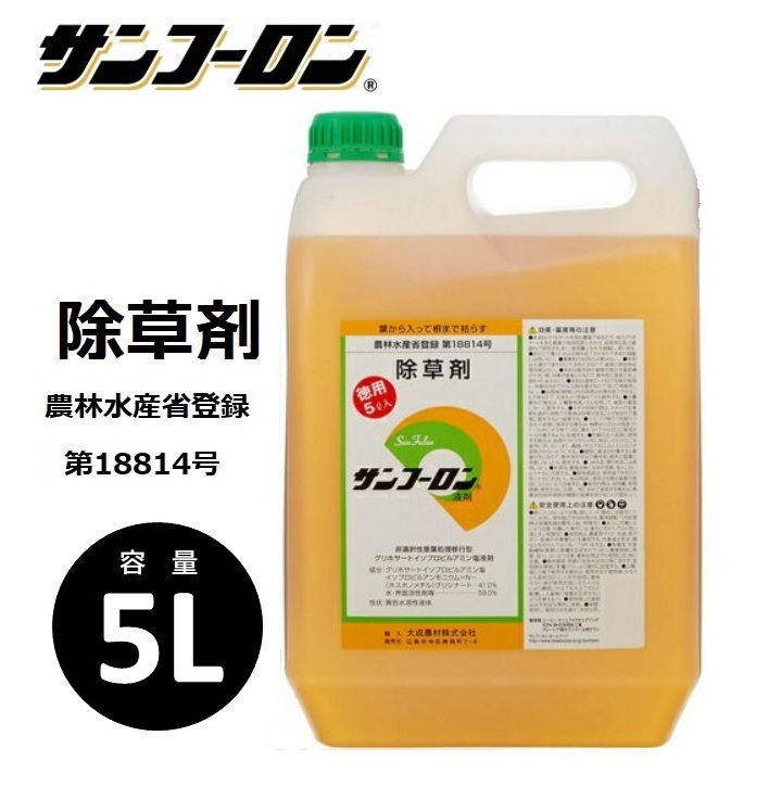 Product name: サンフーロン液剤 5L 大成農材 根まで枯らす 除草剤 農薬 除草 農耕地 グリホ 竹 笹 スギナ ドクダミ ラウンドアップ同等効能