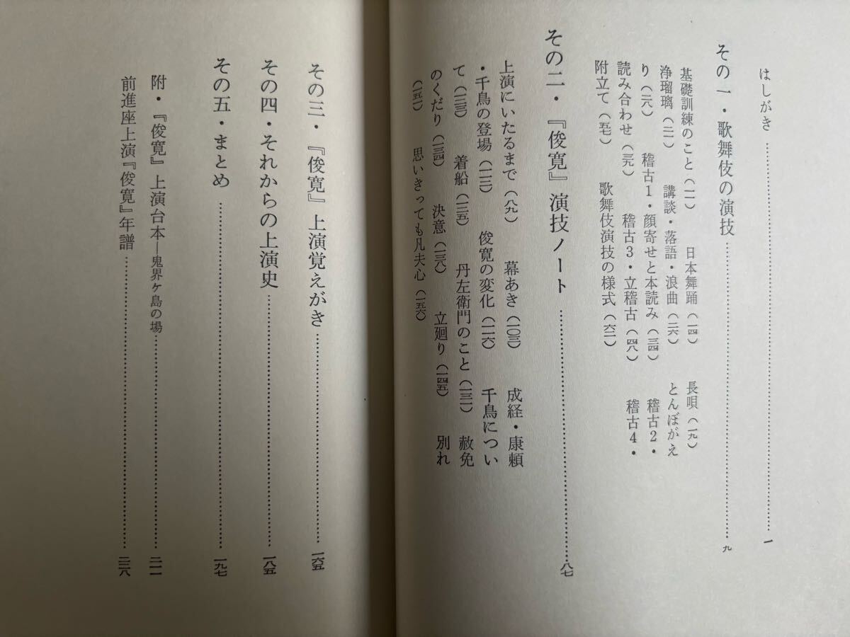 前進座の中村翫右衛門(中村梅之助の父・中村梅雀の祖父)が『平家女護島 俊寛』(近松門左衛門作)を基に歌舞伎の演技をまとめた著書。上演台本付。
