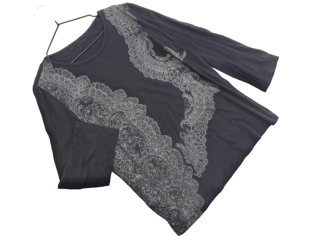 Product name: ネコポスOK EVEX by KRIZIA エヴェックスバイクリツィア プリント 七分袖 カットソー size40/紺 ■◇ ☆ fgc4 レディース