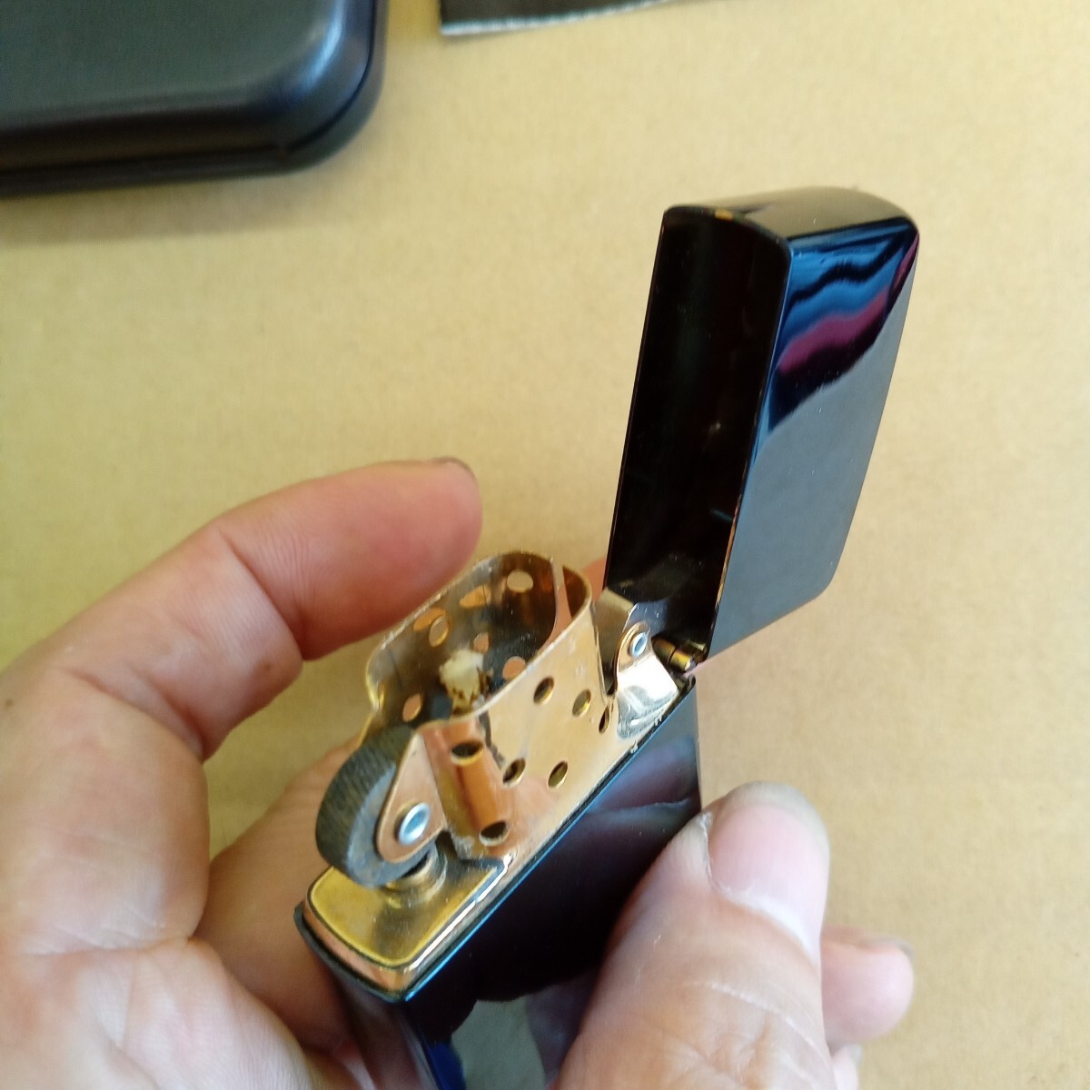 ピースのロゴも彫ってあり金とチタンのプルーがとても綺麗なライターだと思いました。
