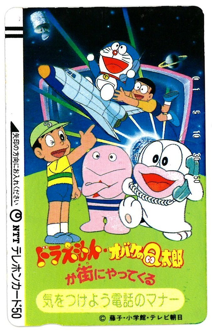 ★ドラえもん・オバケのQ太郎が街になってくる 気をつけよう電話のマナー 藤子 はがれ・傷有★テレカ50度数未使用bm_280