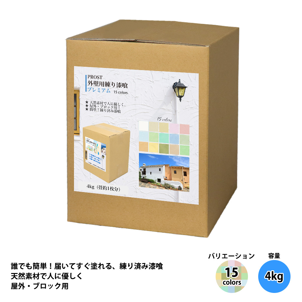 Product name: 簡単!外壁用練り漆喰プレミアム 全15色 4kg(畳1枚分 約1.65m2)/PROST 練済み漆喰 日本製 左官 塗り壁 漆喰 ペイント 外壁用 漆喰 Z28