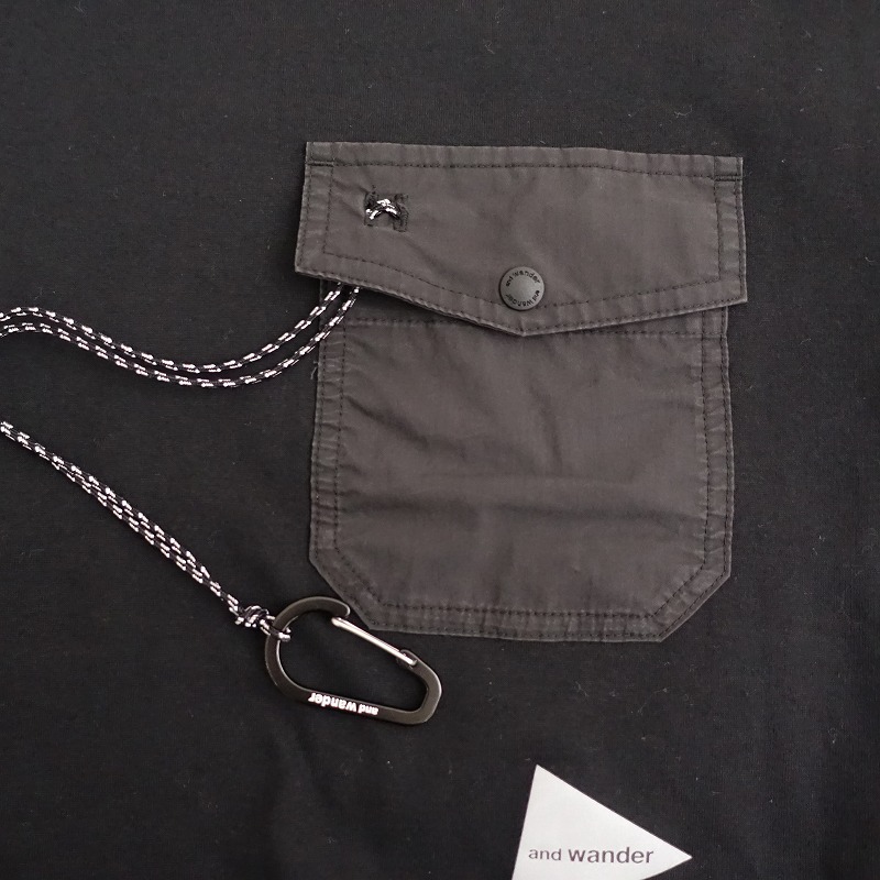 【ユニセックス/定価1.5万】アンドワンダー and wander *ポケットTシャツ*L綿混ブラック黒半袖カットソー(25-2507-165)【03G52】