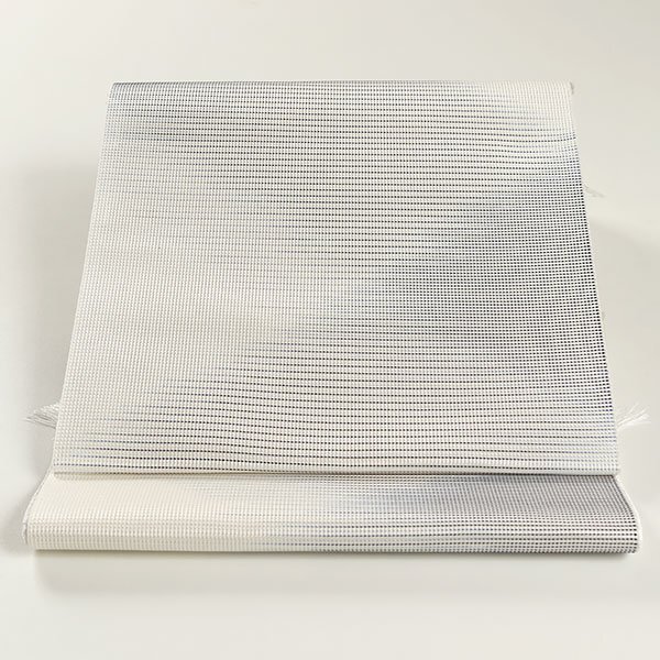 ややコシのある軽やかな帯地は、白色のお色目でございます。全体には鉄紺色、勿忘草色などのお色目の糸が使われており、全体にグラデーションの織りになっております。やや透け感がございますので、袷・単衣・夏のお着物に合わせて、一年を通してお締めいただけますので、大変重宝してくれることでしょう。