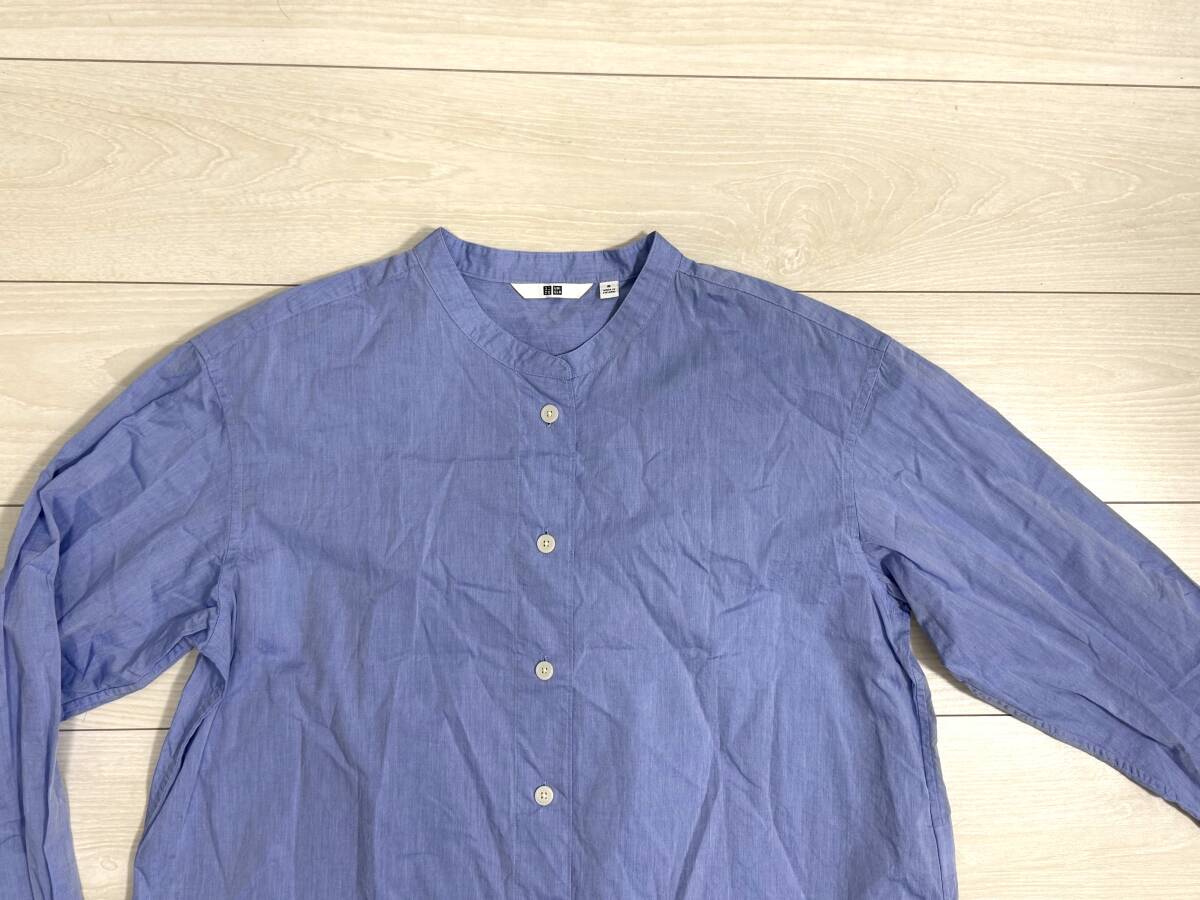 ★ユニクロ UNIQLO コットンスタンドカラーシャツ 長袖 レディース Mサイズ 水色★