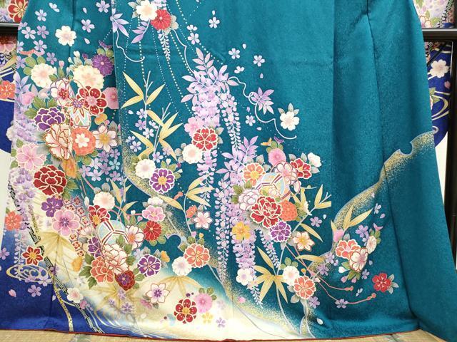 Product name: 平和屋着物▼豪華振袖 刺繍 鞠草花文 暈し染め 銀通し地 正絹 逸品 CAAT6290ze