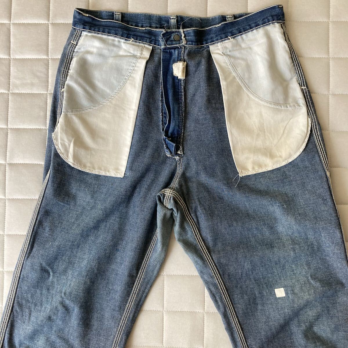 ライトオンスデニム、ブラス製scovillジッパー、USA製。裾はシングルステッチでオリジナルだと思います。サイズもゴールデンサイズです。