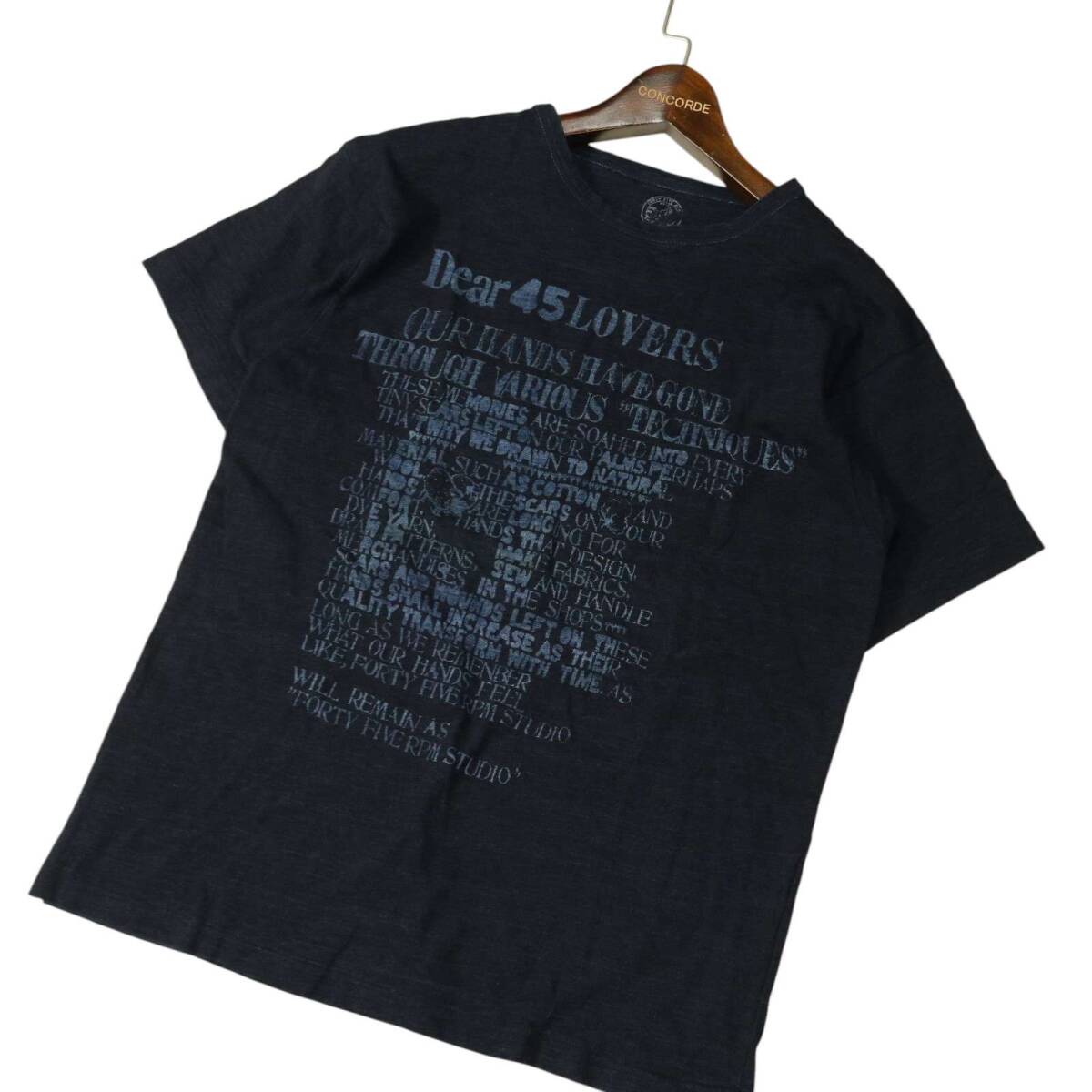 Product name: 【美品】45rpm フォーティーファイブ 春夏 インディゴ染め★ タイポグラフィ 半袖 Tシャツ カットソー Sz.3 メンズ 日本製