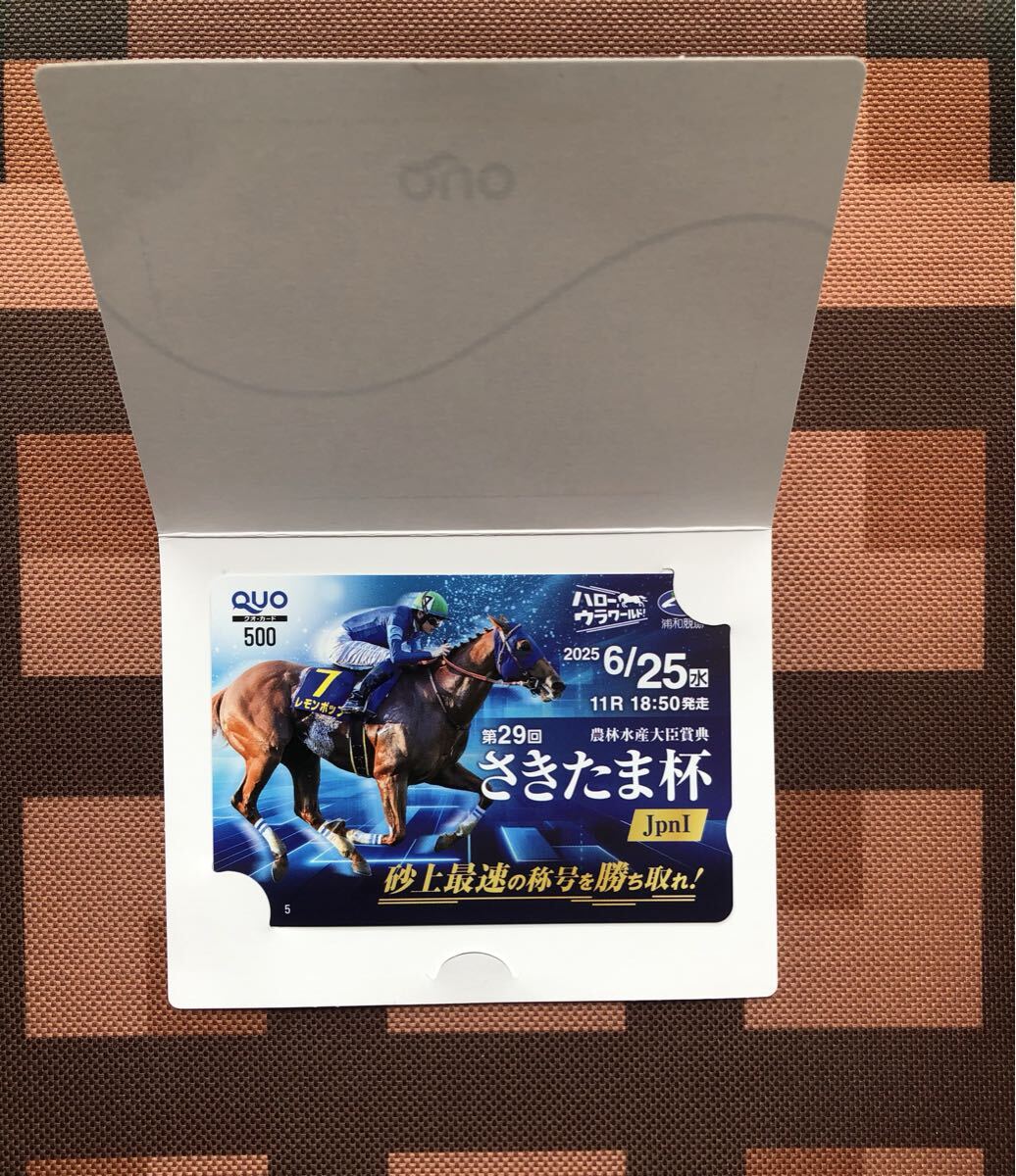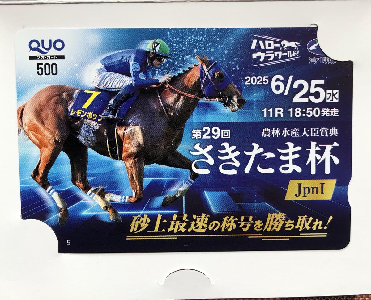 2024年さきたま杯優勝馬レモンポップ号の記念QUOカード500円分未使用品になります。