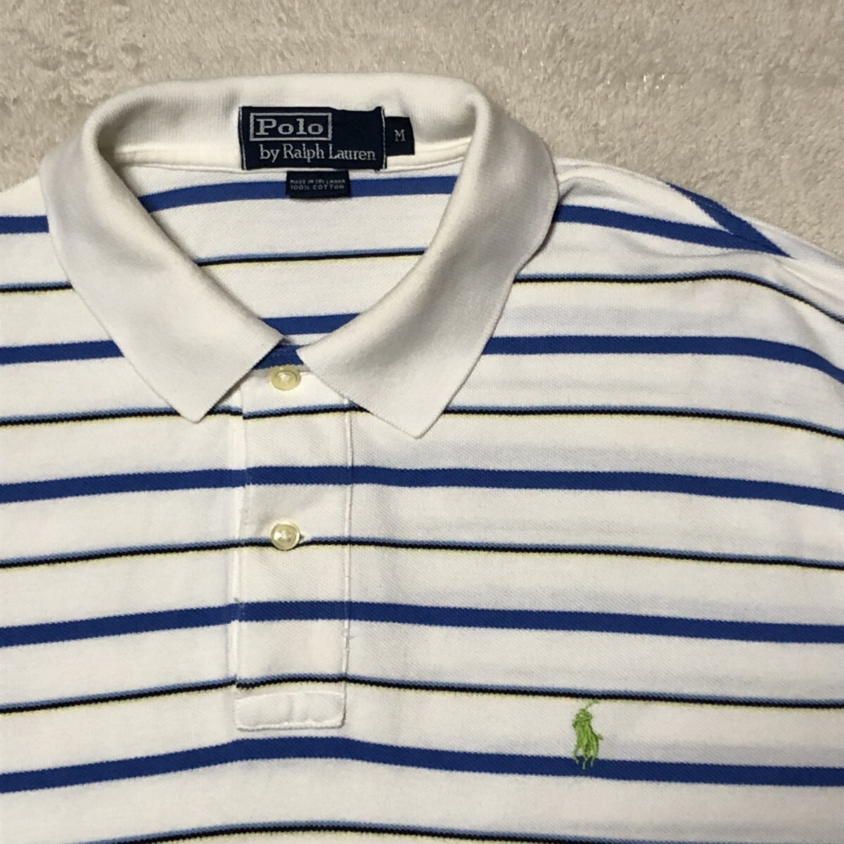 Product name: POLO BY RALPH LAUREN ポロ バイ ラルフローレン 半袖ポロシャツ 鹿の子 ポニー刺 白×ブルー系ボーダー Mサイズ