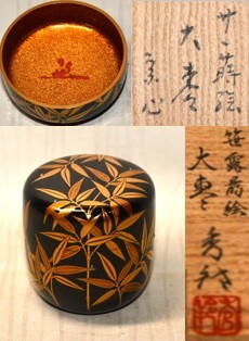 Product name: 48◆初荷です ◆茶道具 加賀蒔絵 御前秀邦 笹露蒔絵大棗 内梨地 ◆堀内宗心(兼中斎)書附箱 共布 しおり付 未使用美品 とても綺麗な巻絵です