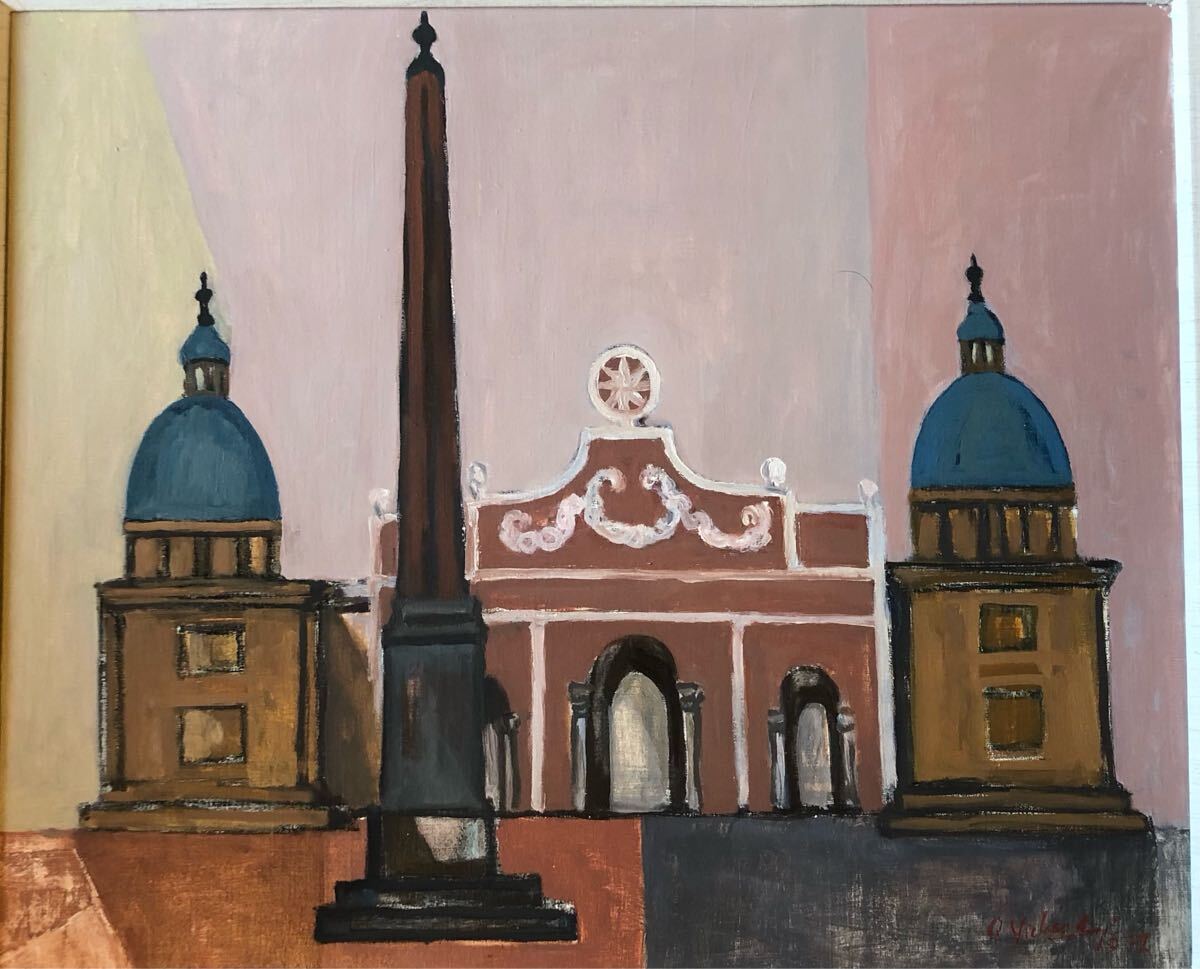 矢橋 六郎 『ローマ ポポロ広場』 1932年作 F12号  真作  油彩画