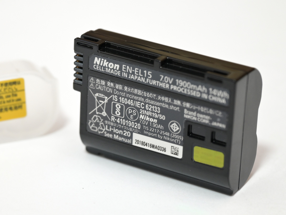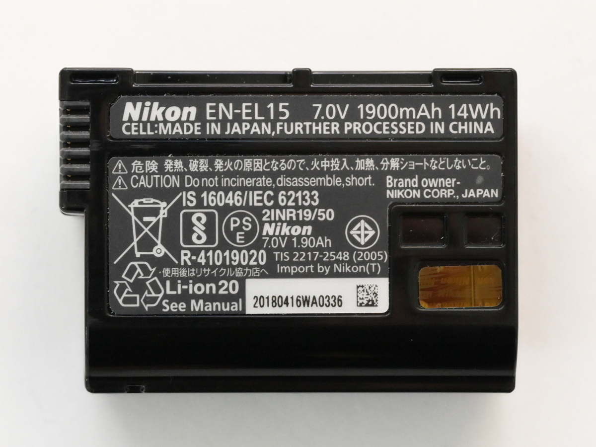 ●EN-EL15(1900mAh)は、ロットナンバー「20180416***」で、後期のLi-ion20規格です。