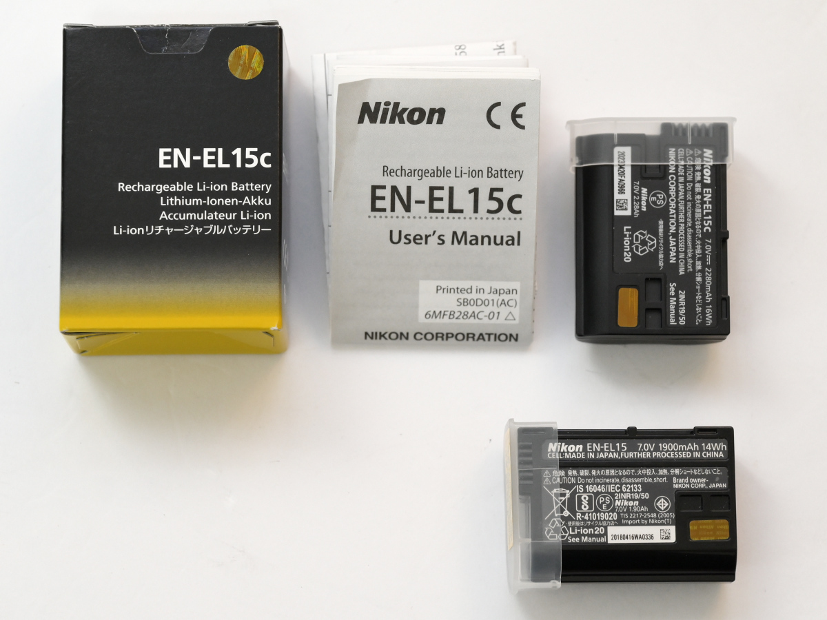 ニコン純正バッテリー、EN-EL15c とEN-EL15、各1本の中古良品です。