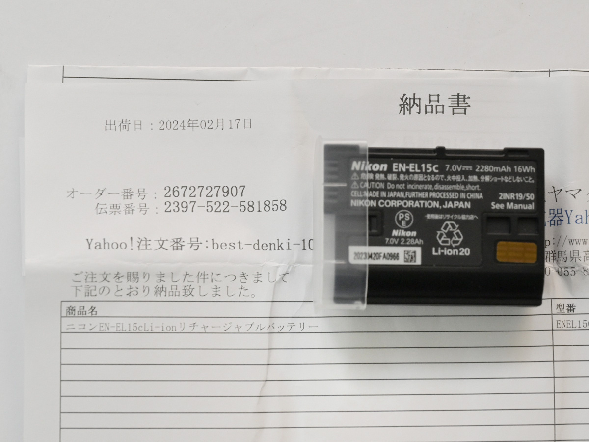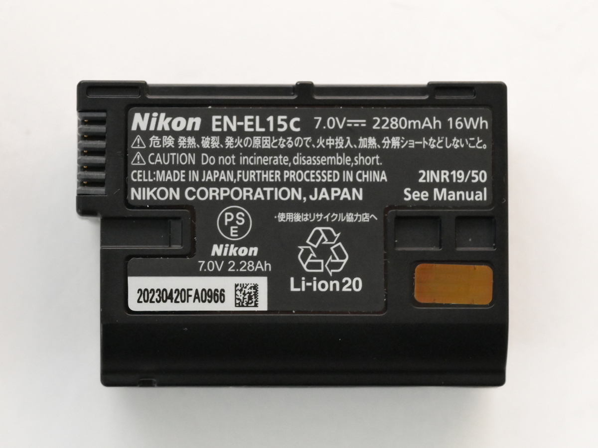 ●EN-EL15c(2280mAh)は、ロットナンバー「20230420***」です。