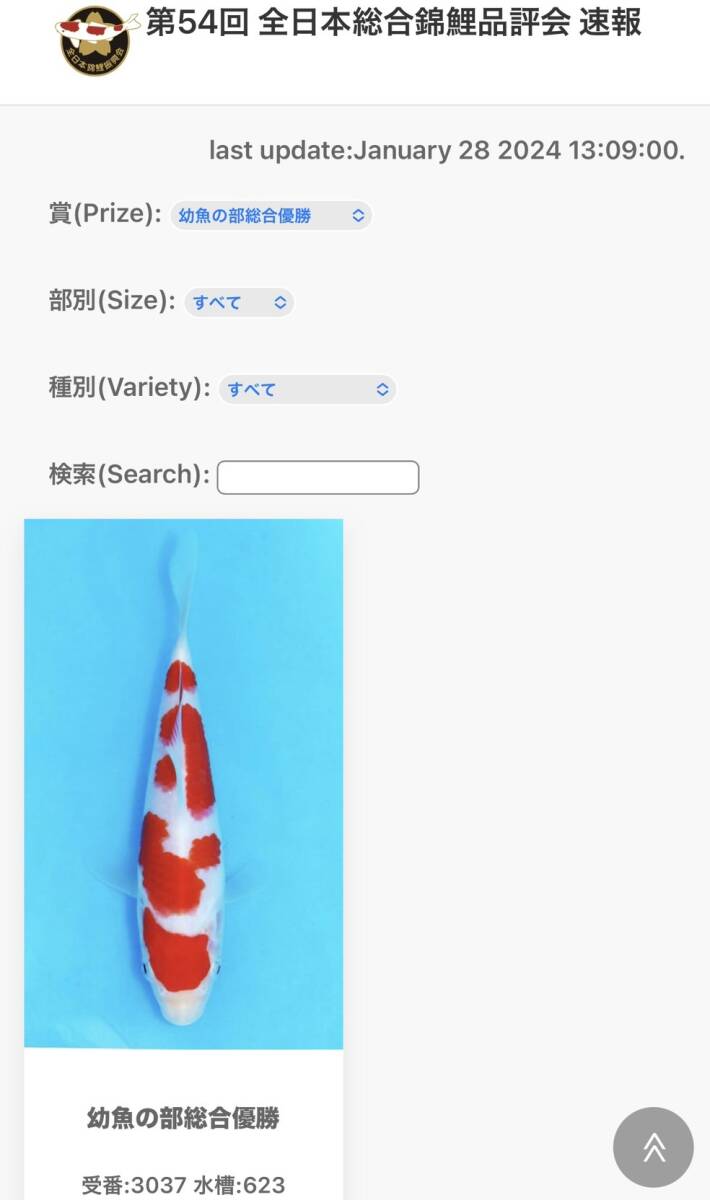 伝統のある世界一を決める全日本総合錦鯉品評会にて、幼魚総合優勝を獲得鯉です。