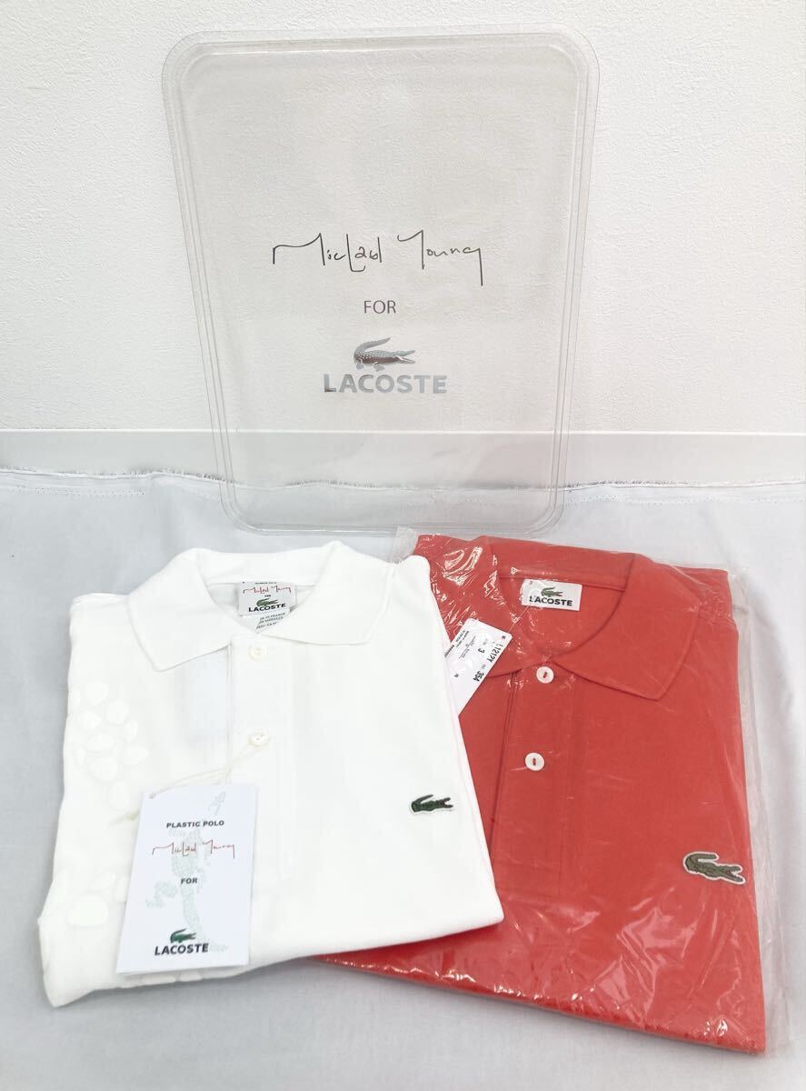 1円スタート ラコステ LACOSTE ポロシャツ 2枚セット ホワイト レッド オレンジ 鹿の子素材 ピケ素材 カジュアルウェア size3 0804K③