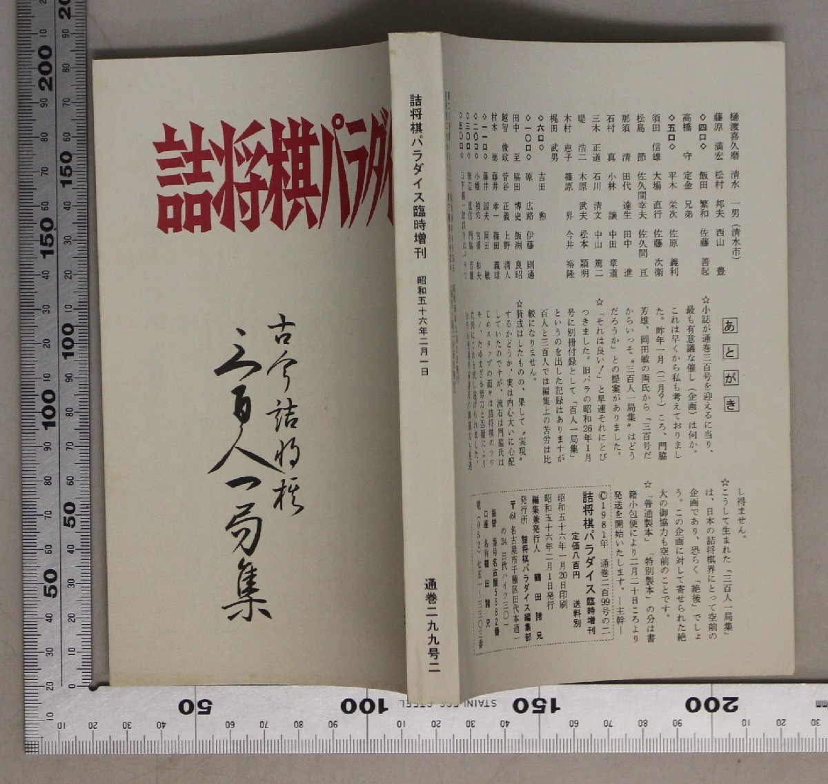 Product name: 趣味『詰将棋パラダイス ’81臨時増刊 古今詰将棋三百人一局集 通巻299号-2』詰将棋パラダイス編集部 補足:大橋宗桂/伊藤宗看/伊藤宗印