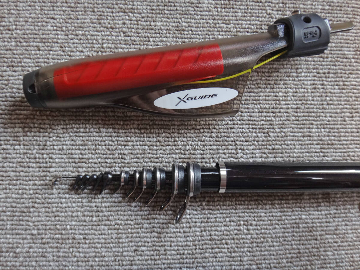 某サイトでAランクのものを中古購入しましたが、1回使っただけでその後出番がないため出品します。よく見たつもりですが、最後の写真にある小キズぐらいしか見つかりませんでした。ただし見落としや、中古品ですので目立たない程度の細かいキズ・スレ・使用感などはあると思います。あまり細かいことを気にされる方は入札をお控え願います。穂先の詰めや尻栓固着もありません。写真にあるもののみで、他に付属するものはありません。