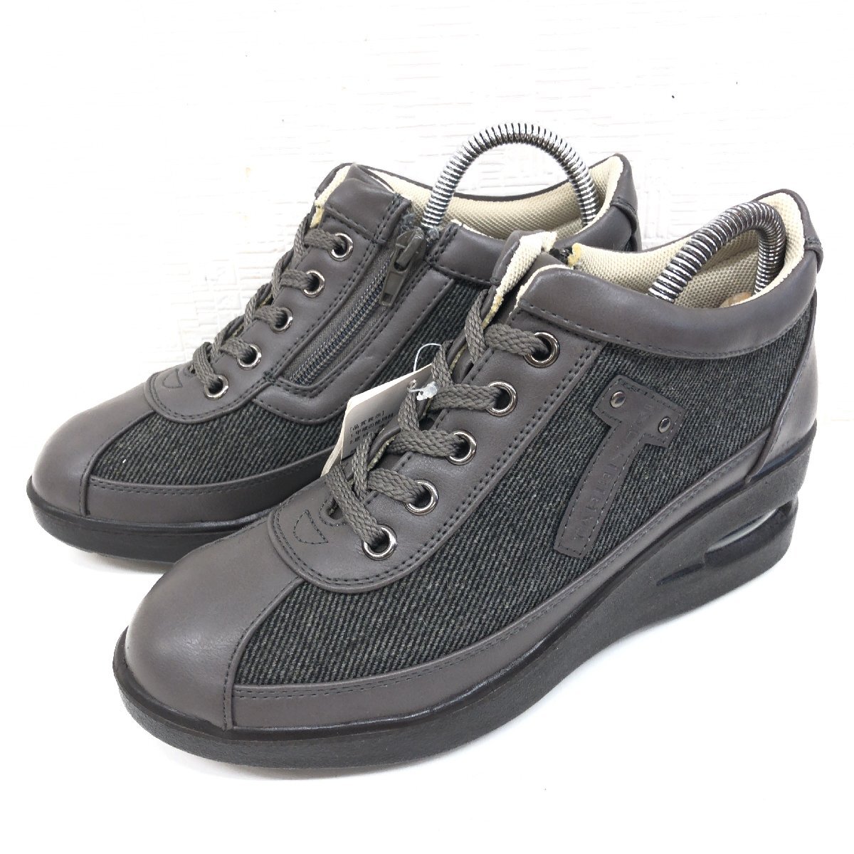 ●新品 TABIBIYORI ASICS 旅日和 アシックス ウェッジソール ウォーキングシューズ 23cm EEE チャコール スニーカー コンフォート 未使用