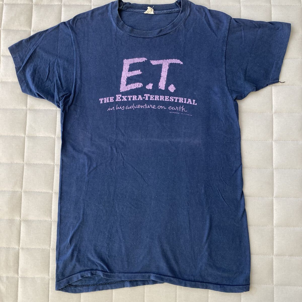 (オリジナル)80s E.T. 半袖 Tシャツ サイズS程度 ネイビー 両面プリント ビンテージ ムービー 映画 USA製 ユニバーサルスタジオ