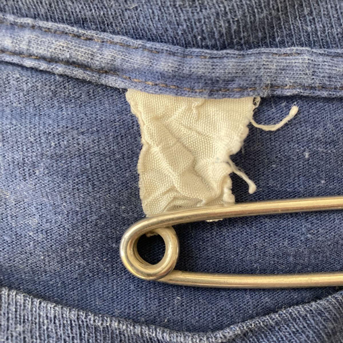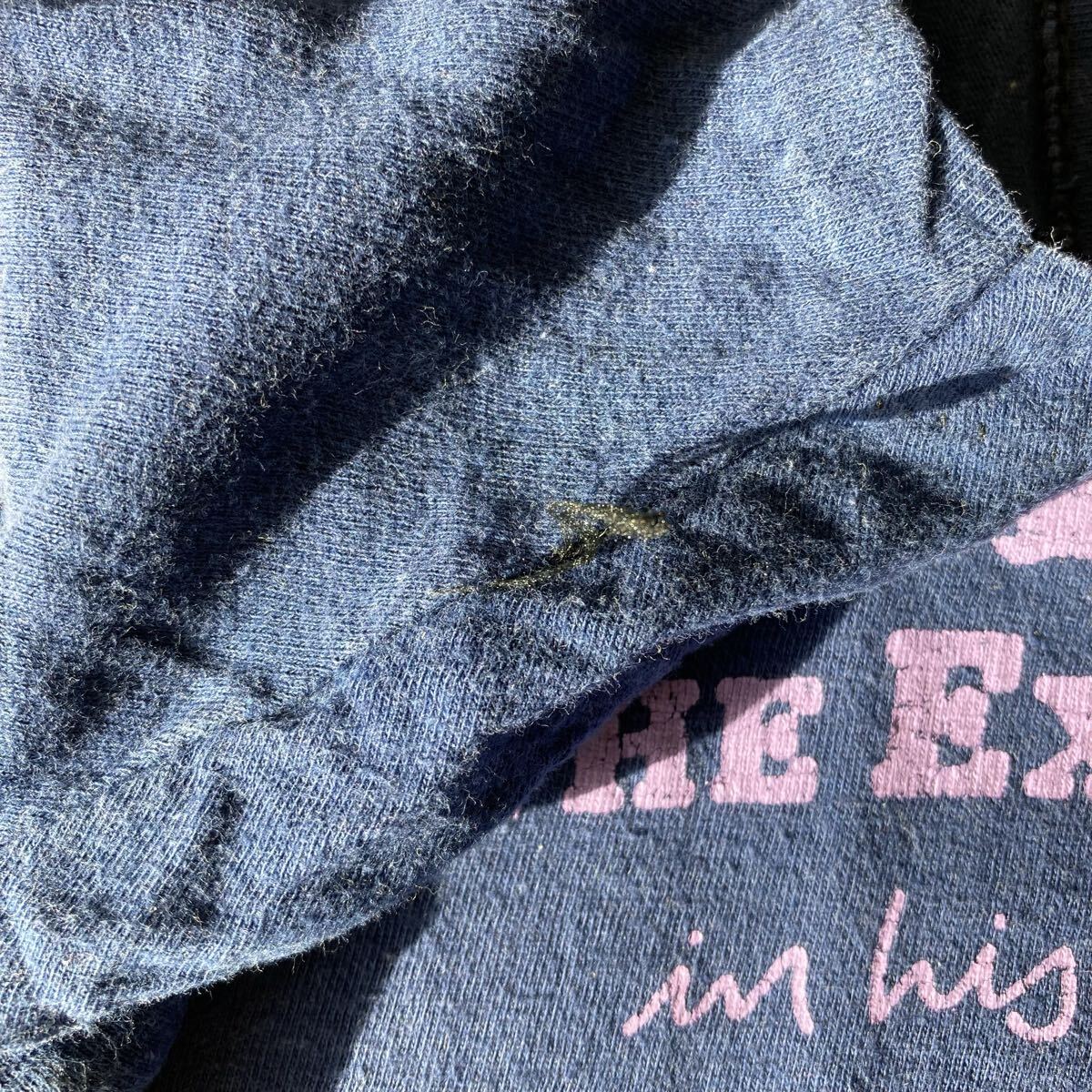 生地に毛羽立ちあり、プリントに割れあり、正面に色褪せあり、袖に縫製糸出ているところあります。