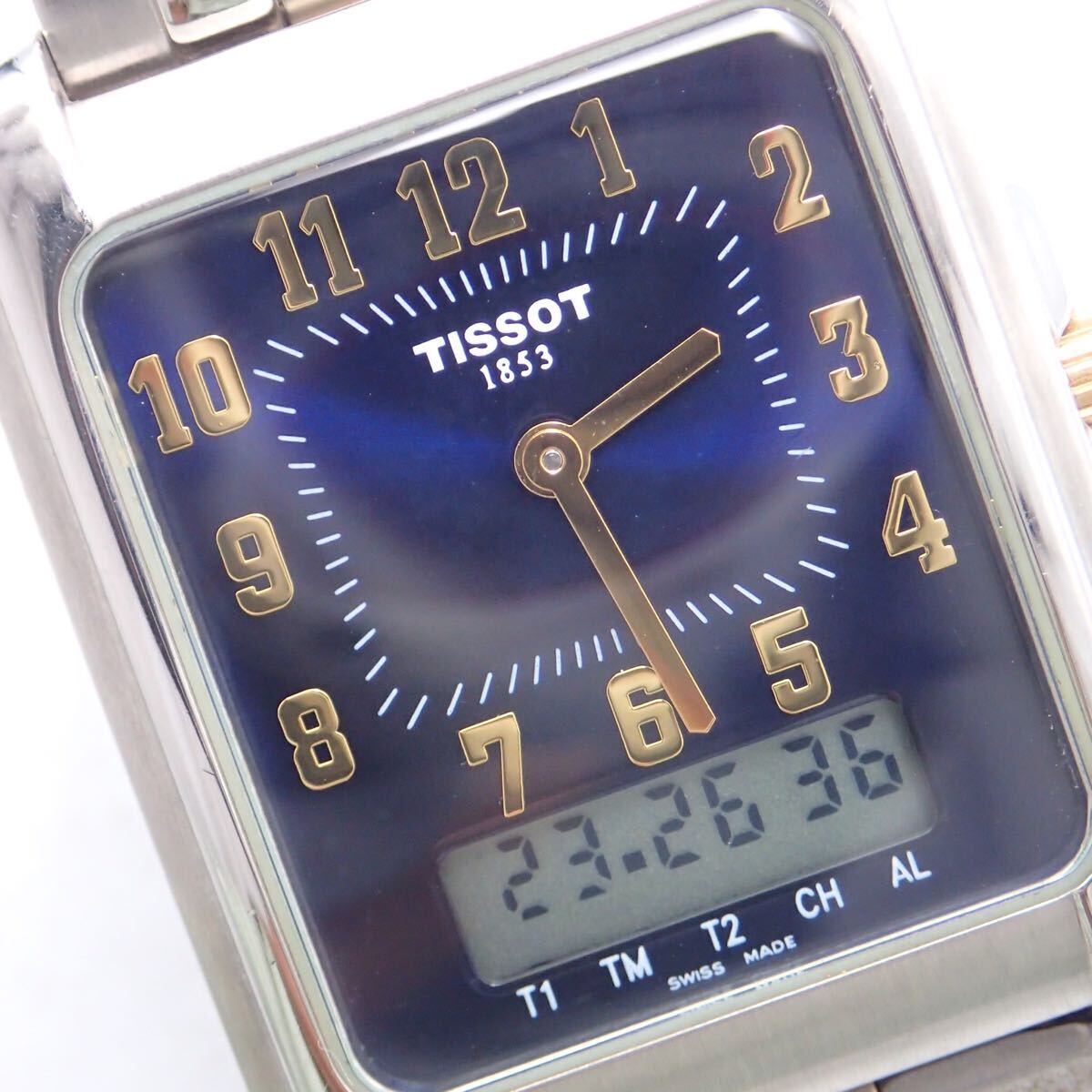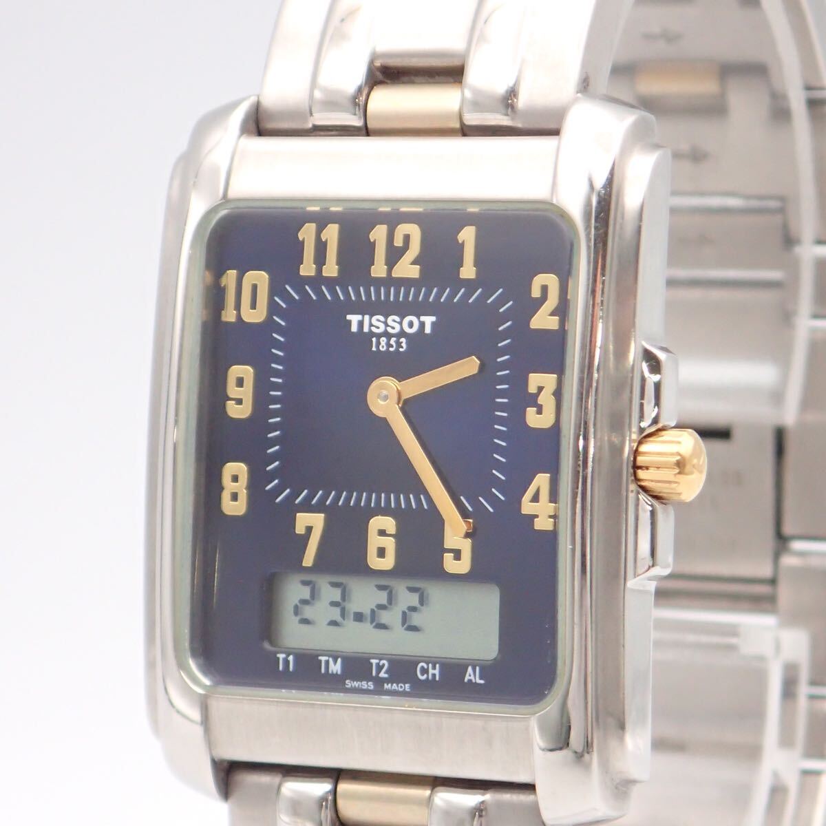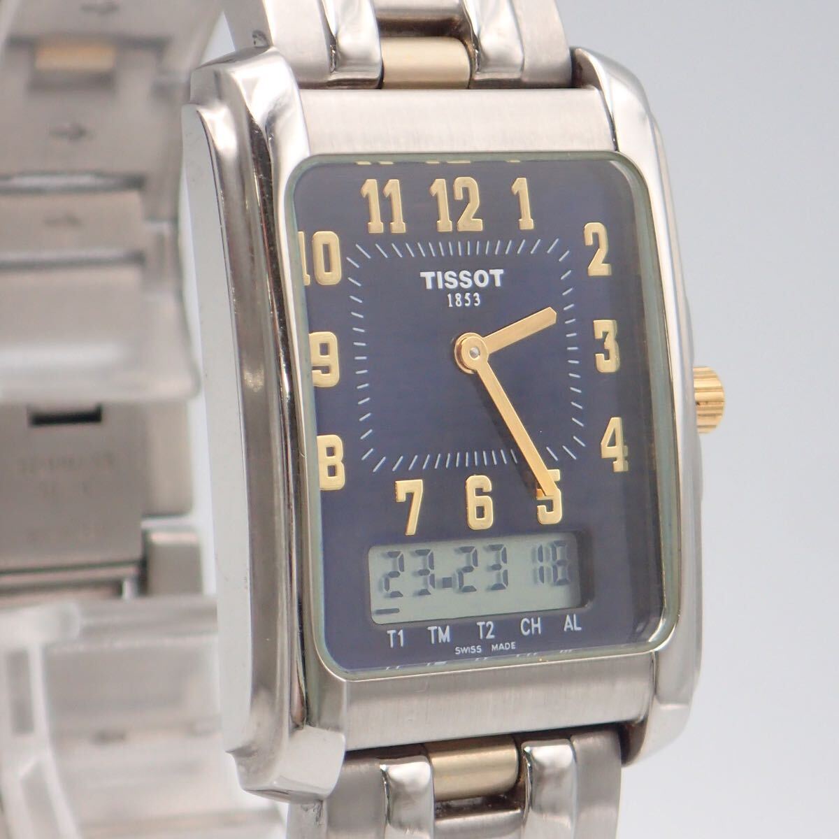 お07157/TISSOT ティソ/クオーツ/メンズ腕時計/デジアナ/数字/コンビ/文字盤 ブルー/D130/230K