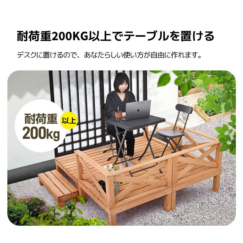 Product name: ウッドデッキ天然木キット 8点セット1坪 ウッドパネル家具ガーデンファニチャーバルコニーベランダ踏み台付 キットウッド 【レッドブラウ