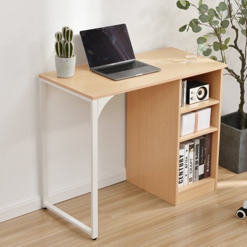Product name: 【新品】パソコンデスク 3段シェルフ付 オフィスデスク 簡易デスク 木製 ミシン台 学習机 アジャスター付き【ナチュラル】