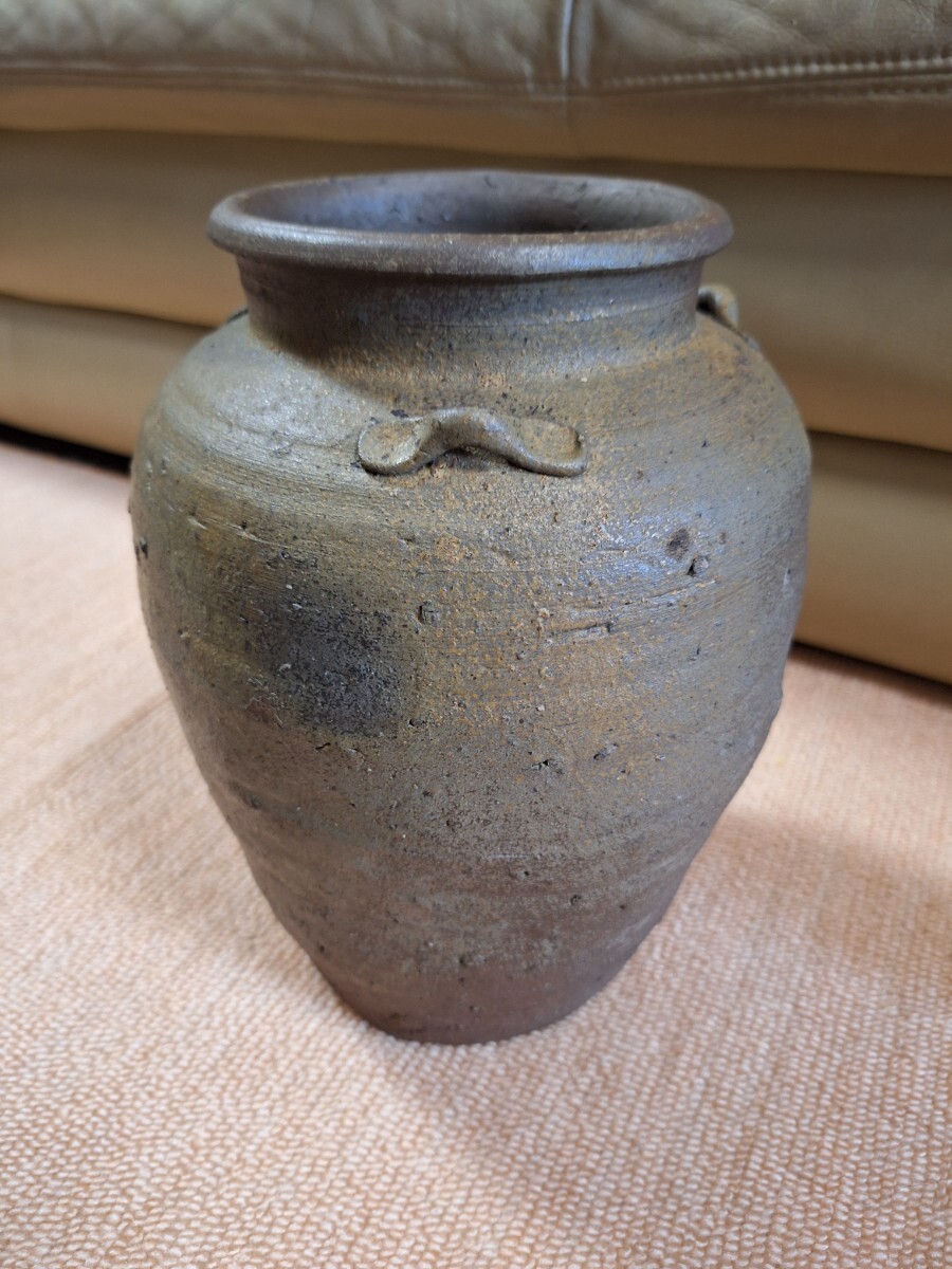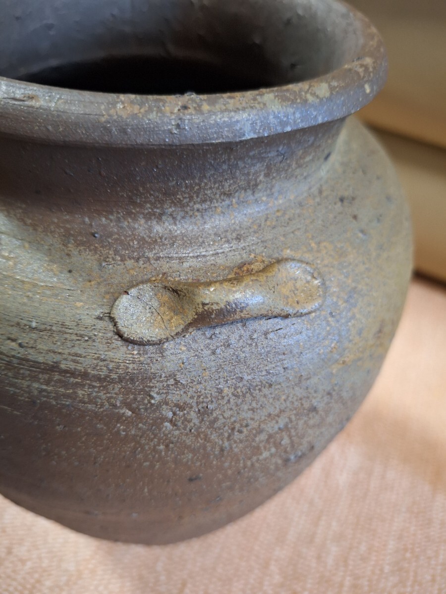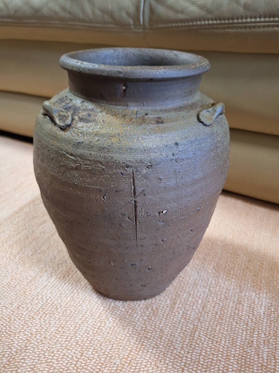 少し古い備前焼、三耳壺です。高さ約26、5cm、口径約13cm、箱はありません。