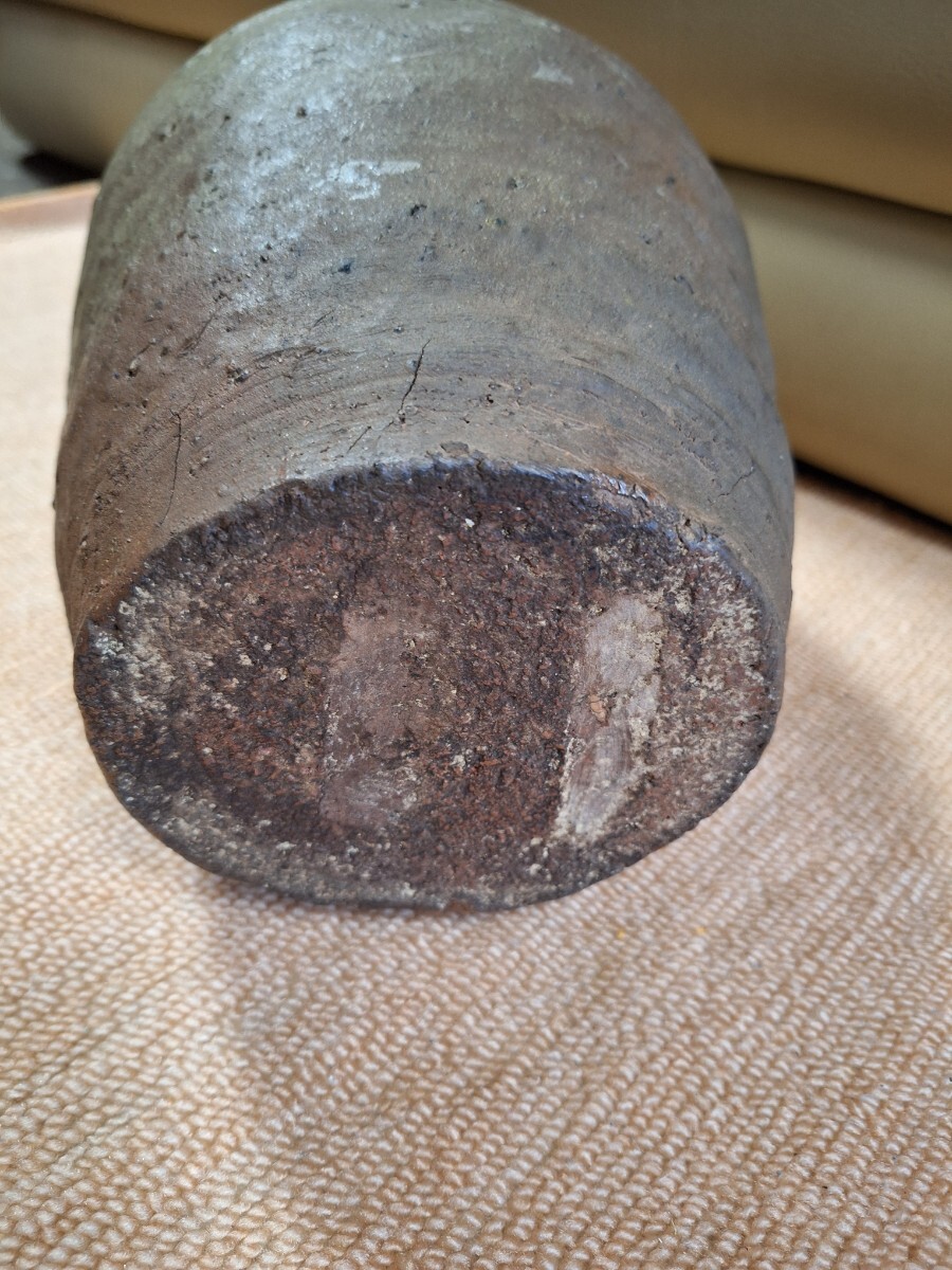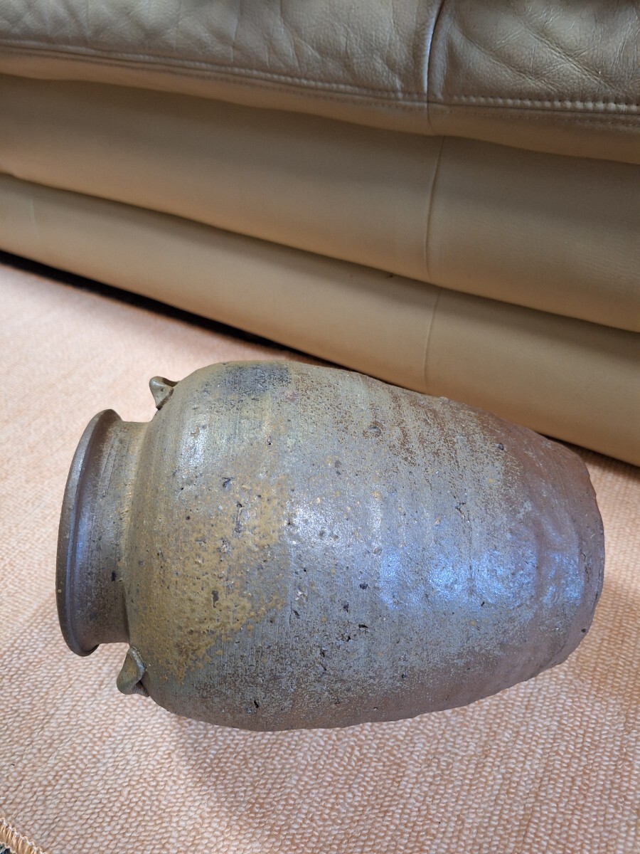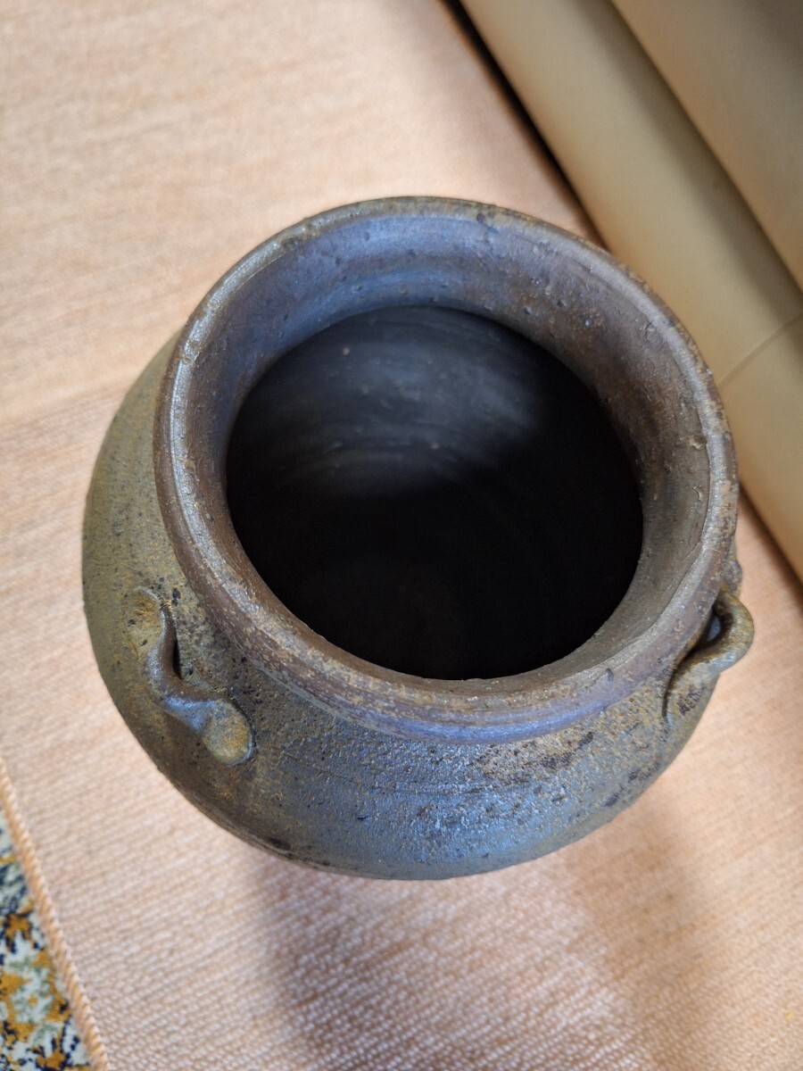 少し古い備前焼、三耳壺です。高さ約26、5cm、口径約13cm、箱はありません。