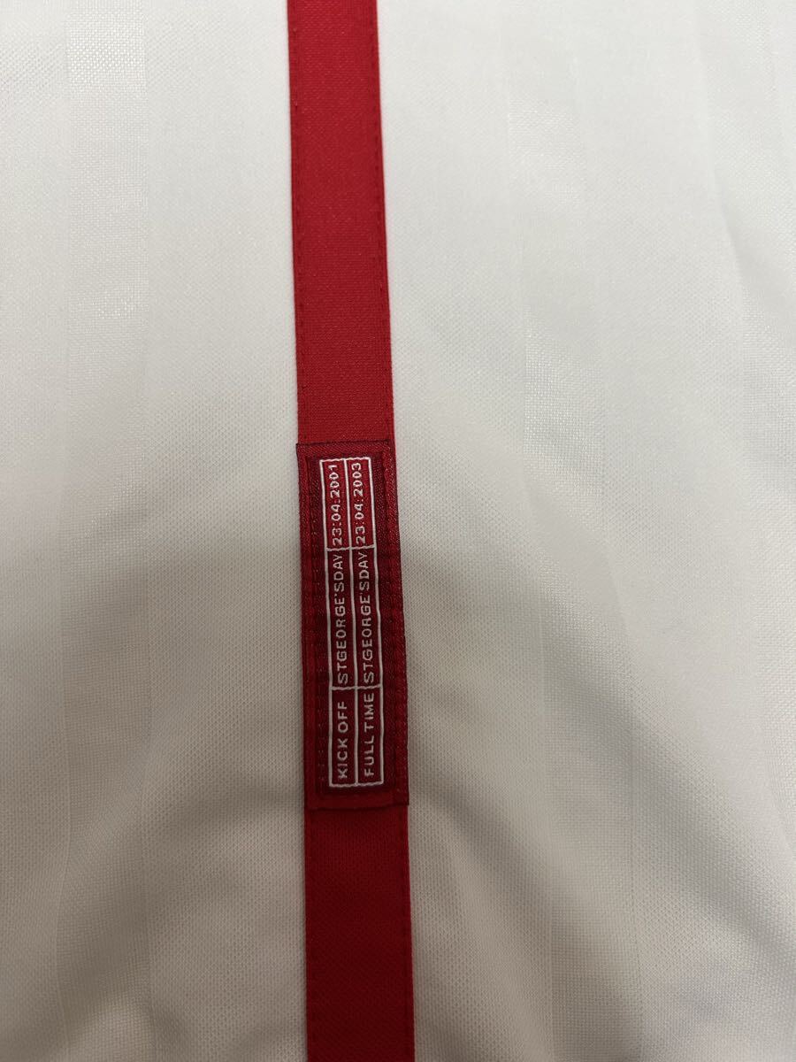 2001〜03まで使用された、イングランド代表チームのホームユニフォームです。サイズは実寸で身幅61cm、着丈75cmほどです。首裏のサイズ表記は経年でプリントが取れておりますが、XLで間違いありません。