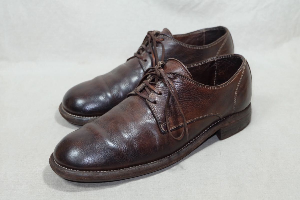 定価15万円 数回着 Guidi グイディ 最高級グレインカーフレザー使用 美しいレースアップダービーシューズ UK43 goodyear welted製法 ITALY製高級手製革靴 ハンドメイド アンティーク ヴィンテージ メンテナンス&クリーニング済み
