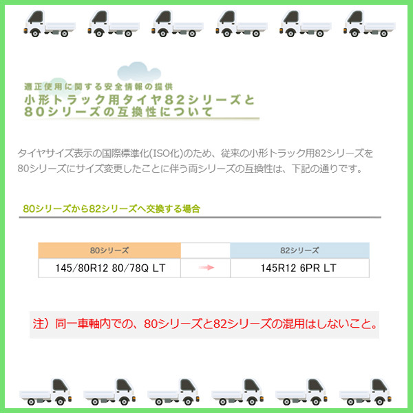 145R12 と 145/80R12は同一車軸内での混在装着はできません