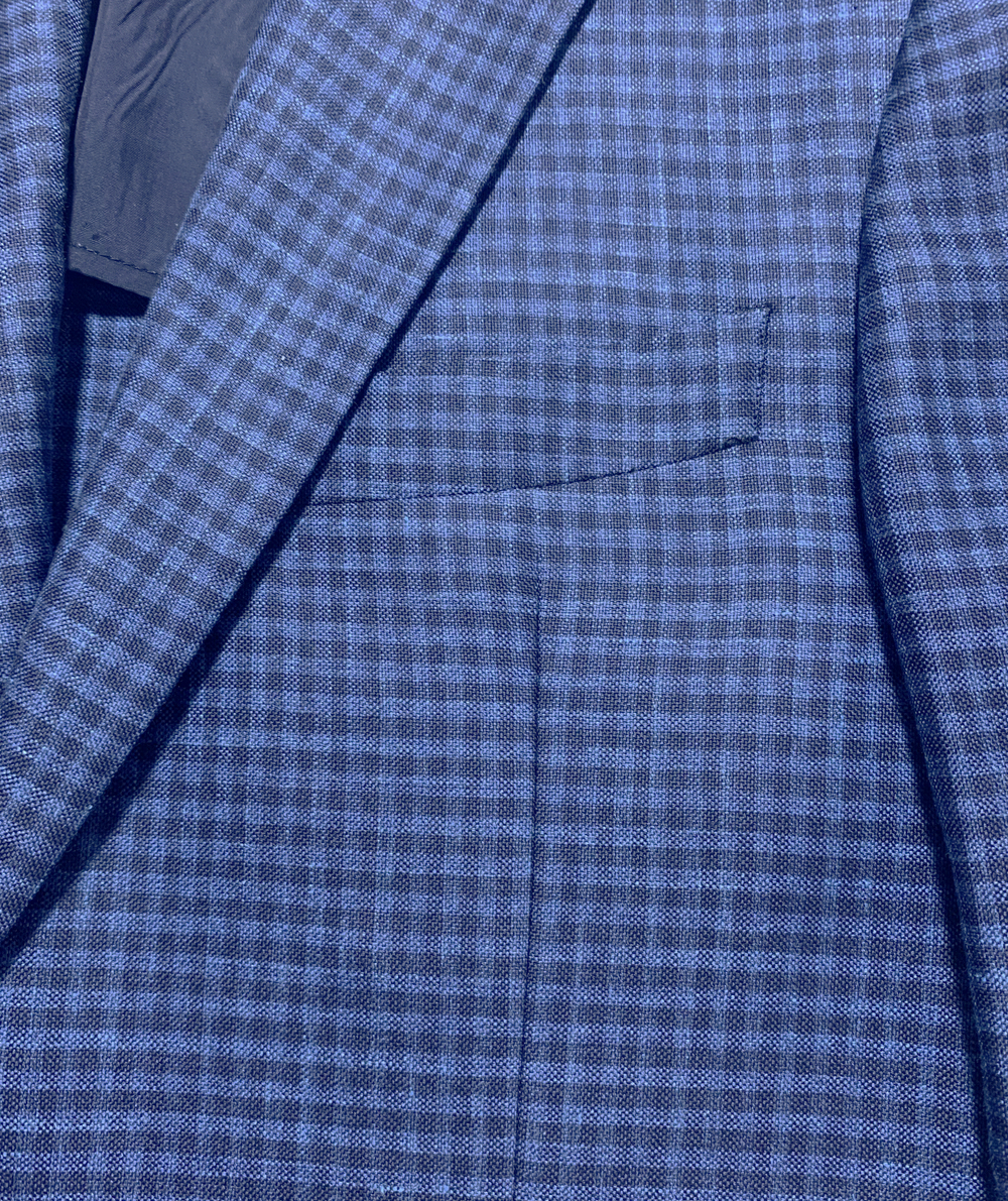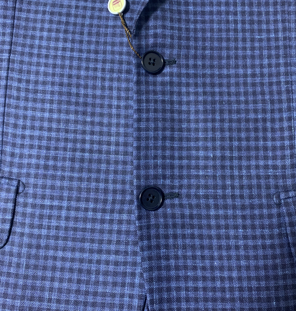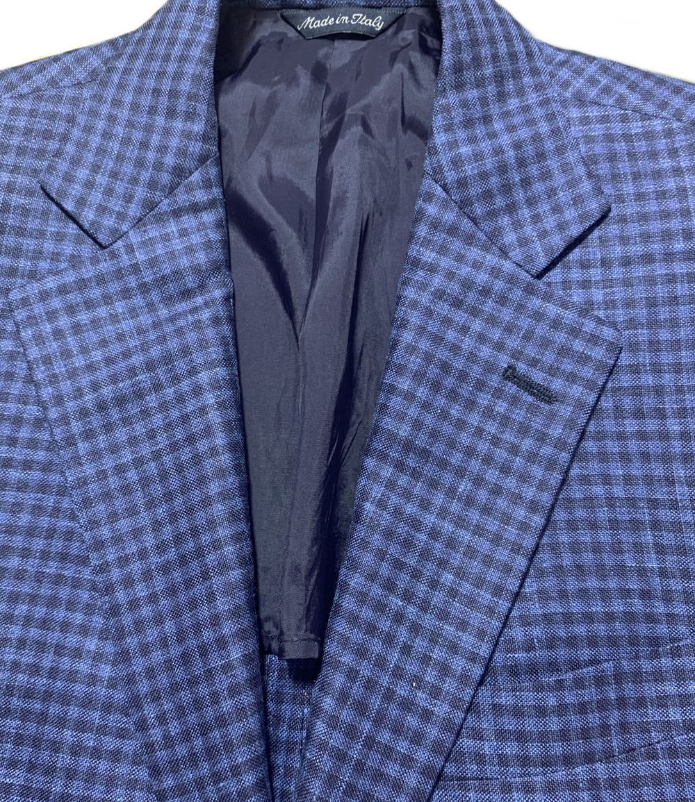 シングルブレステッド2つボタンスタイルで、快適なフィット感を出すためライニング部分は背抜きの仕様です。