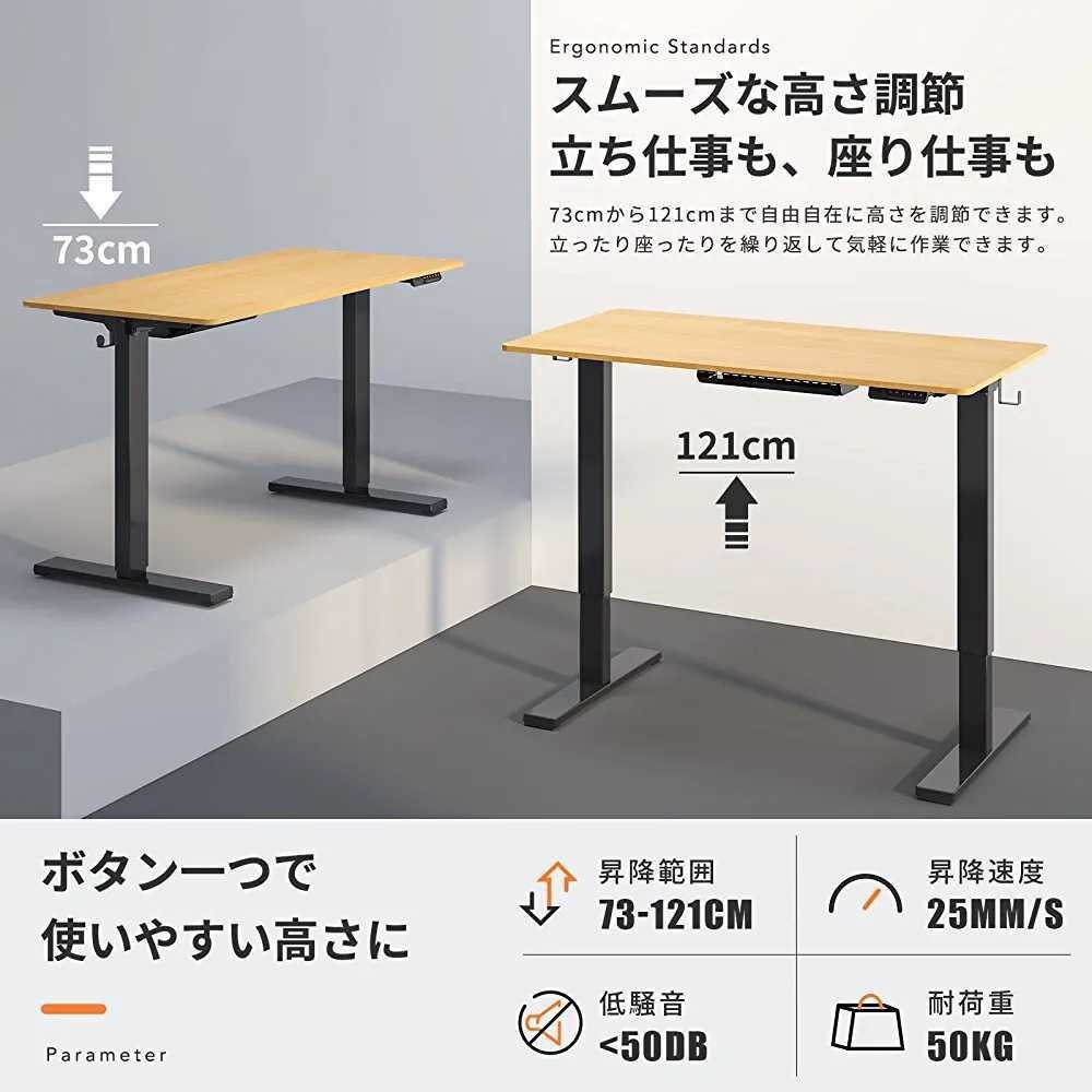 商品規格】天板:120cm*60cm;昇降範囲:73-121cm;昇降速度:25mm/s;耐荷重:50kg; フック耐荷重:4.5KG;
