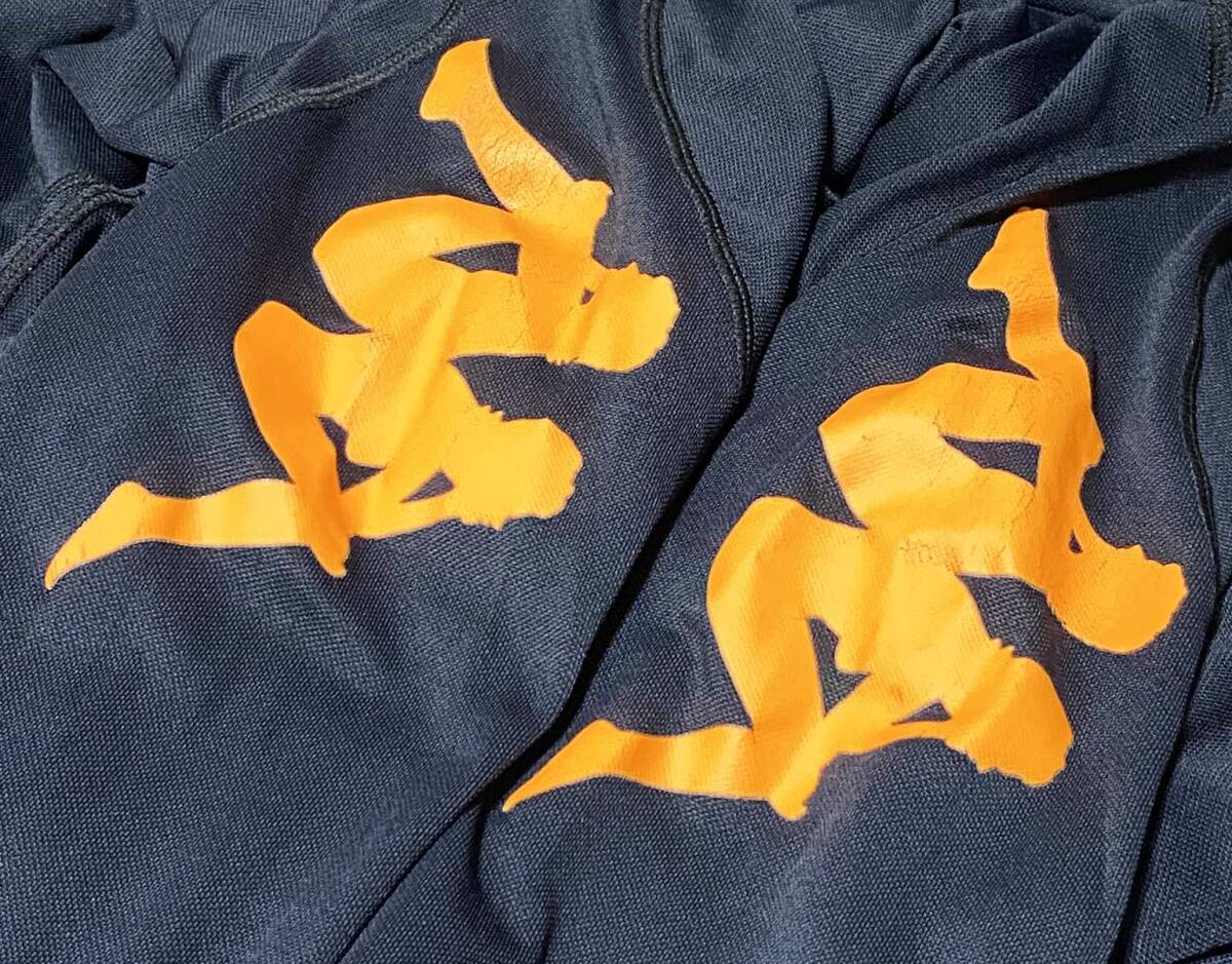 胸のメーカーロゴプリント/スポンサープリントに多数のひび割れ/傷み等があります。