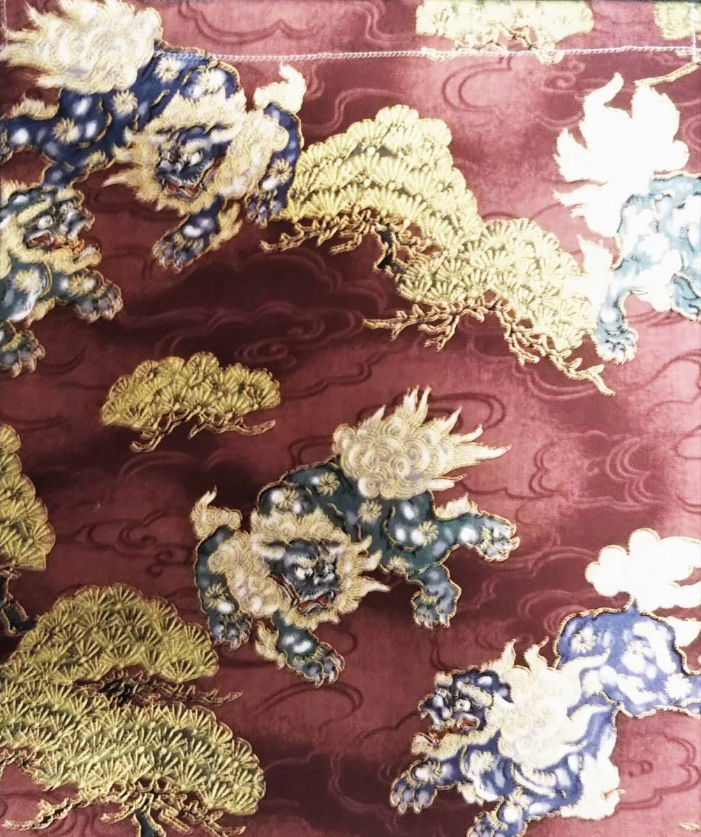 巾着袋■金彩雲海に松と獅子  えんじ【約よこ25.5cm×たて30.5cm】濃紅 和柄 国産