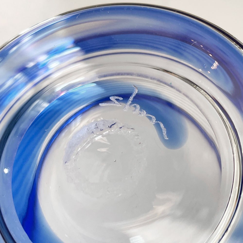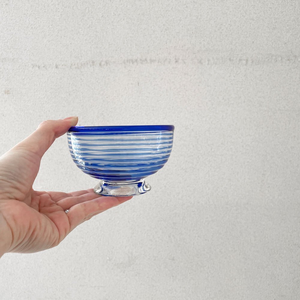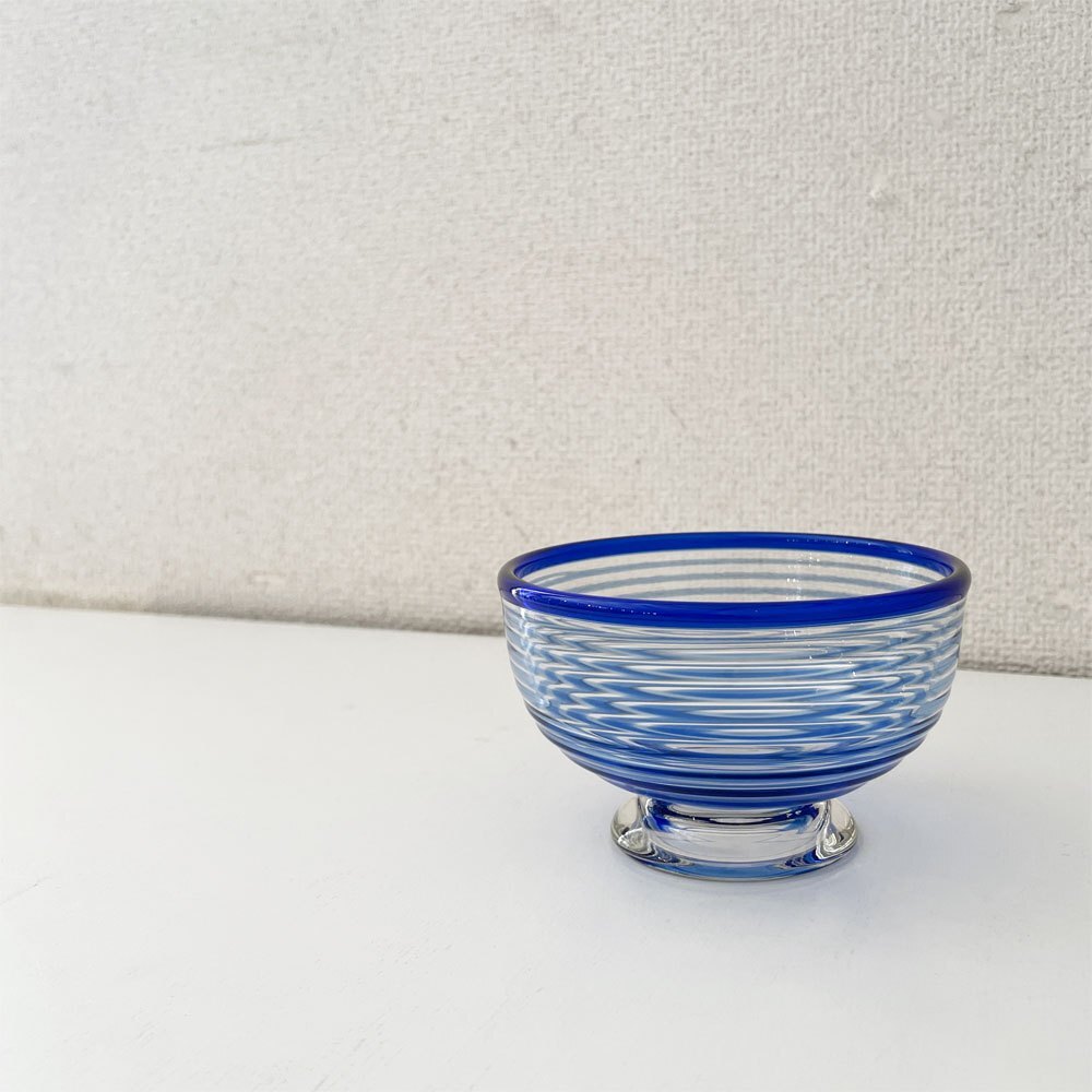 ◎ 舩木倭帆 フナキシズホ くもの巣鉢 脚付きボウル Φ11×6.5cm ブルー 線巻 手吹きガラス 現代作家